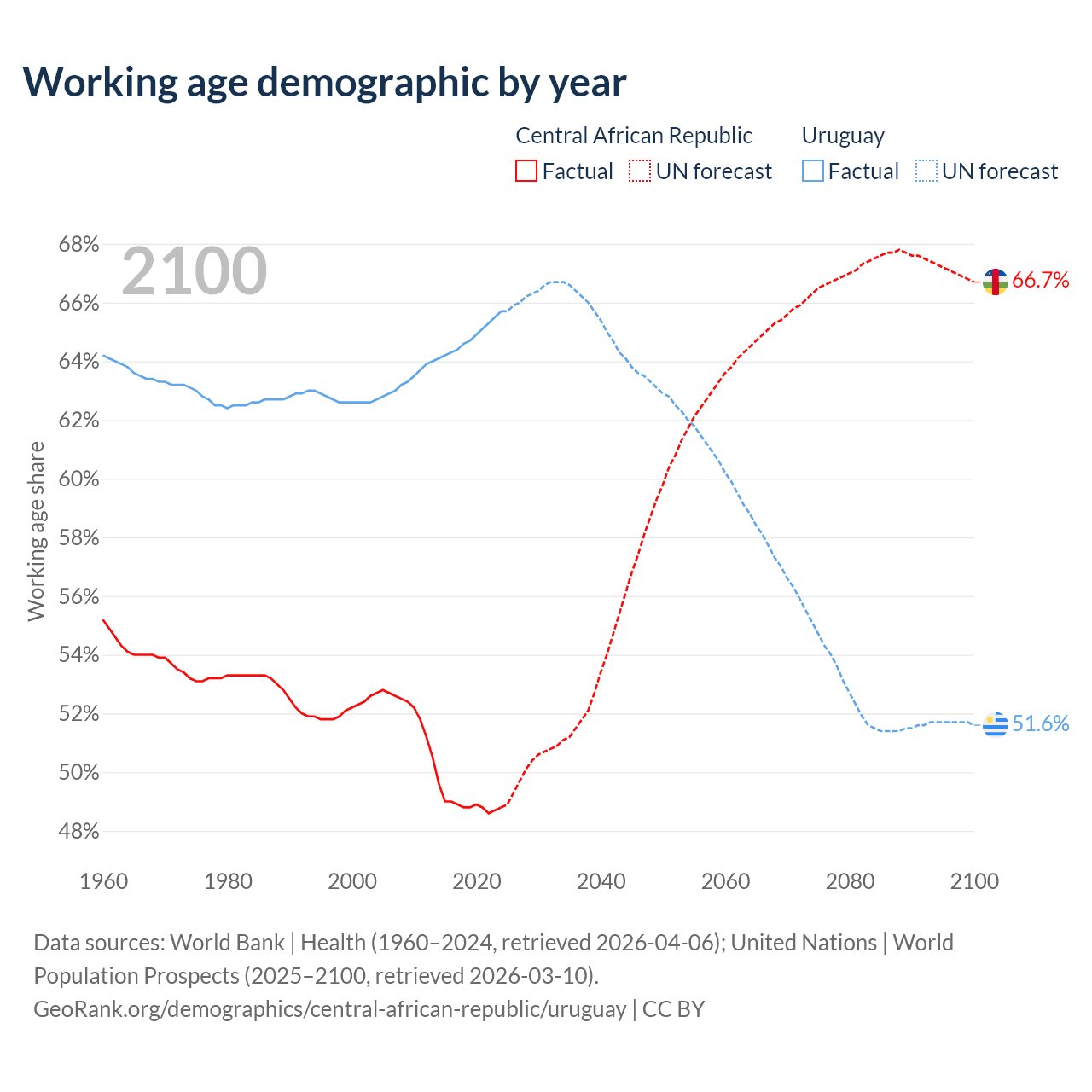 - The Central African Republic has 2.81M working age adults (aged 15-64) vs 2.22M in Uruguay.