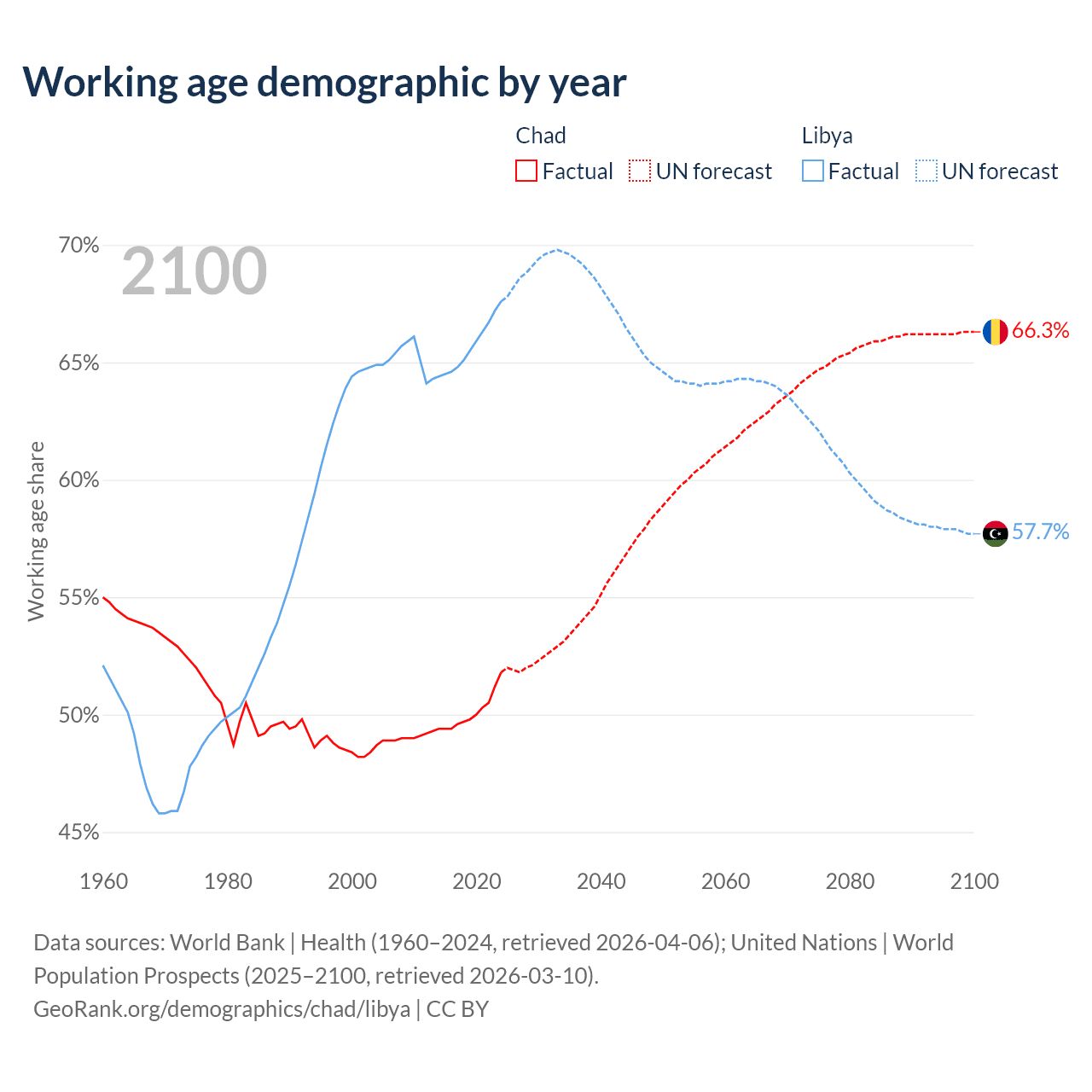 - Chad has 11.3M working age adults (aged 15-64) vs 5.11M in Libya.