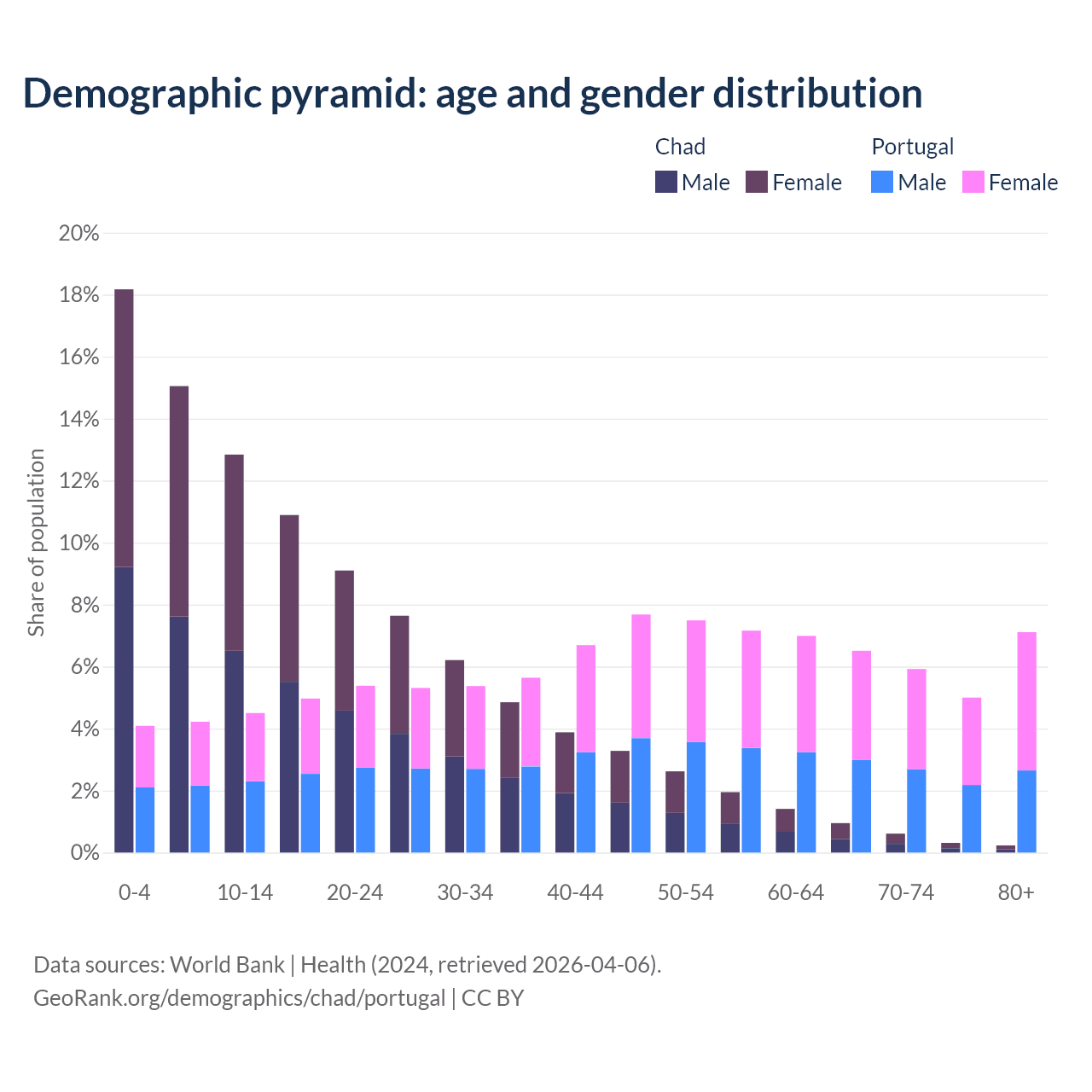 Demographics of Chad compared to Portugal: