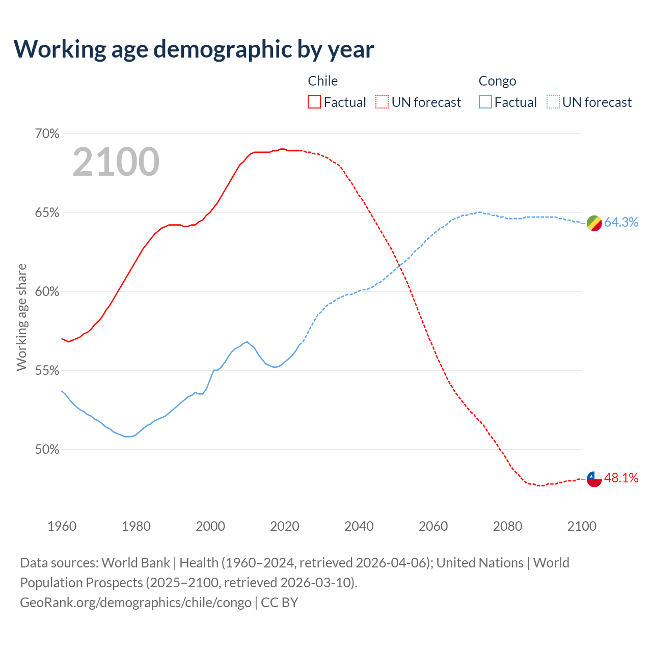 - Chile has 13.8M working age adults (aged 15-64) vs 3.78M in the Congo.