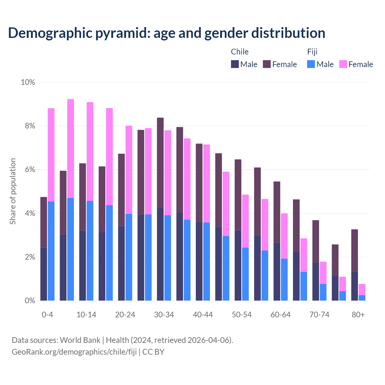 Demographics of Chile compared to Fiji: