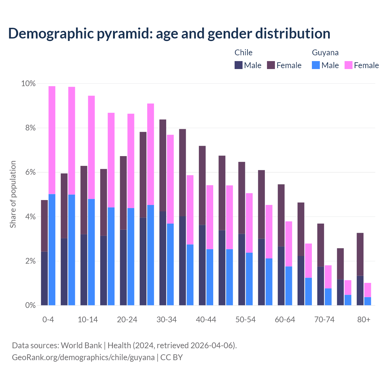 Demographics of Chile compared to Guyana: