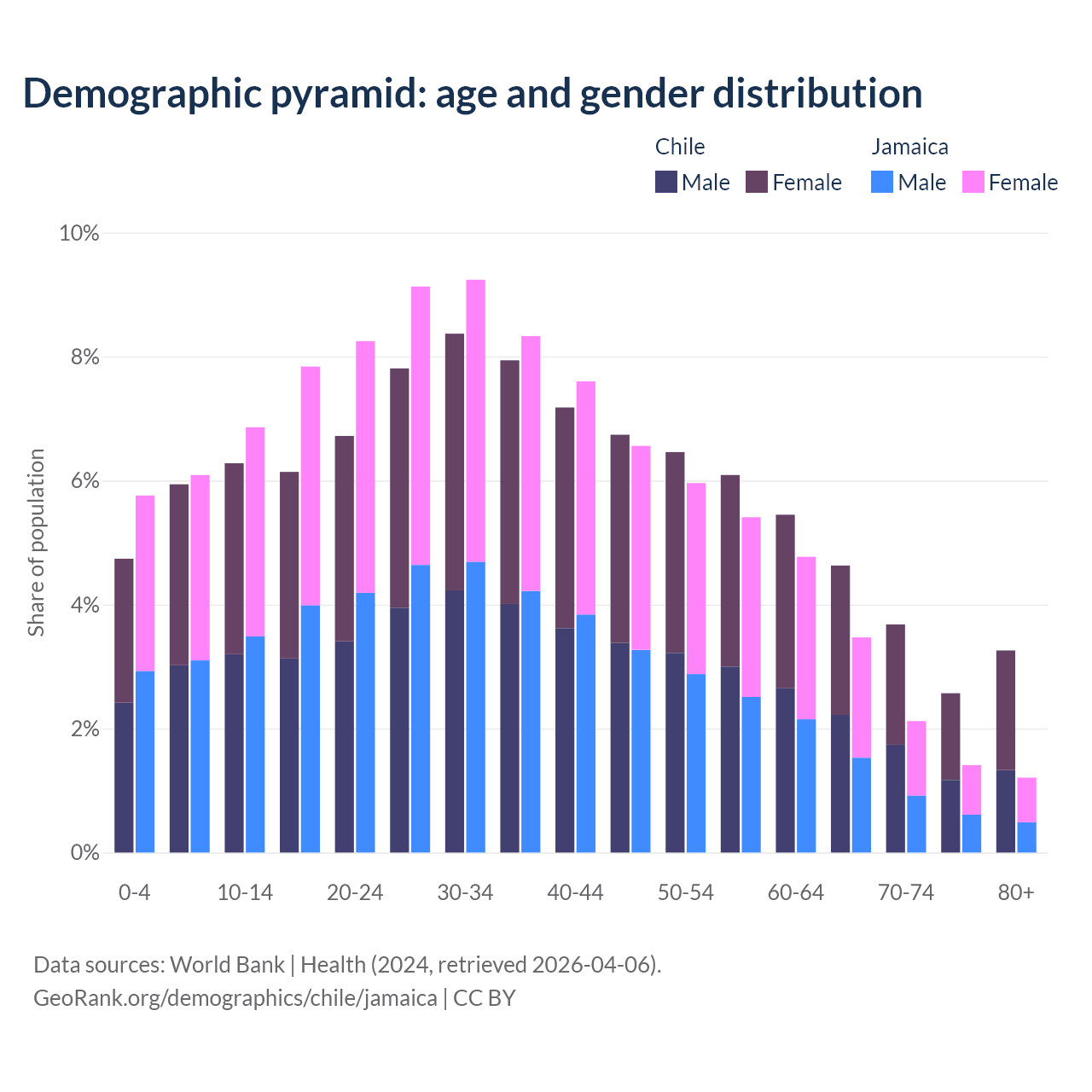 Demographics of Chile compared to Jamaica:
