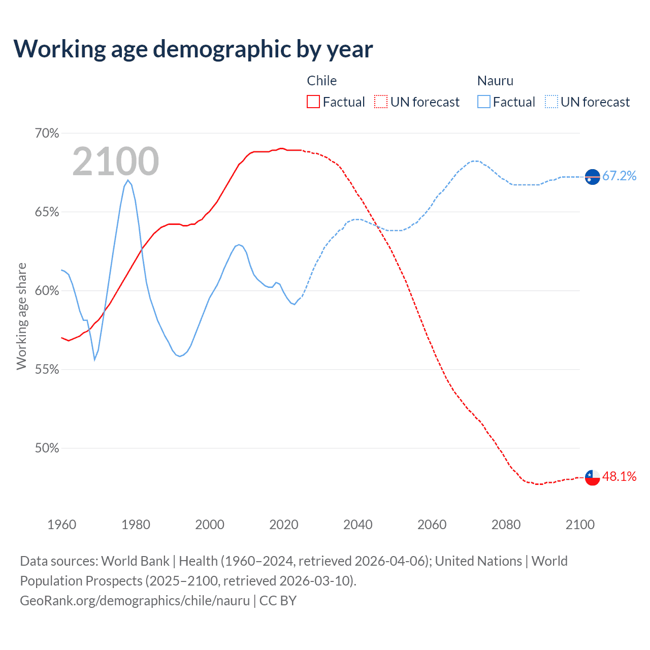 - Chile has 13.8M working age adults (aged 15-64) vs 7.2K in Nauru.