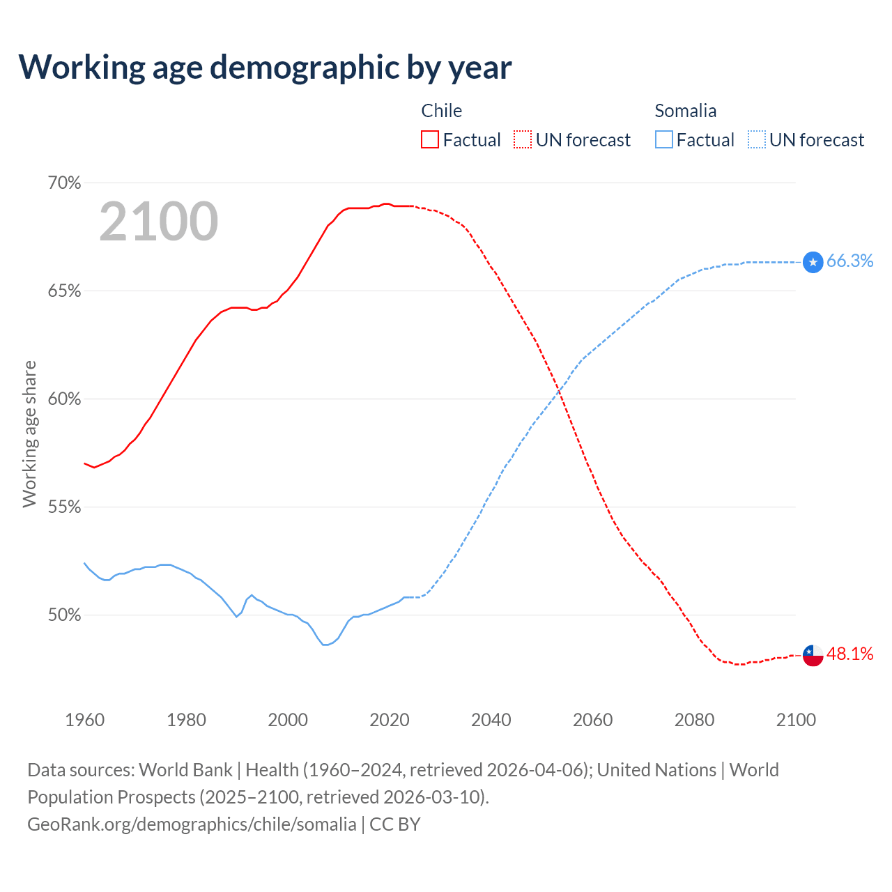 - Chile has 13.8M working age adults (aged 15-64) vs 10.4M in Somalia.