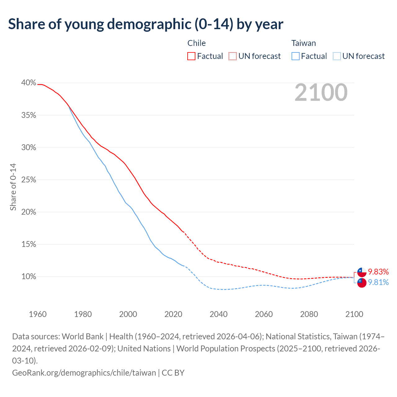 - The share of young demographic (0-15 years old) in Chile is 17% vs 11.7% in Taiwan.