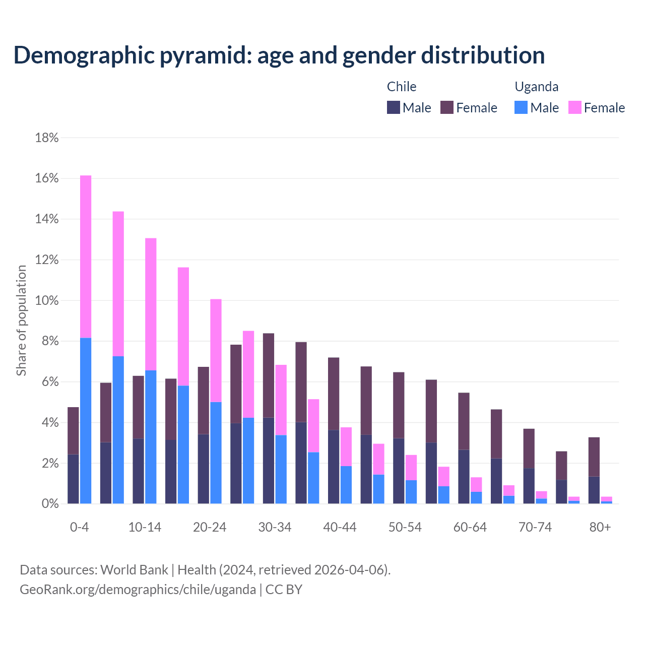 Demographics of Chile compared to Uganda: