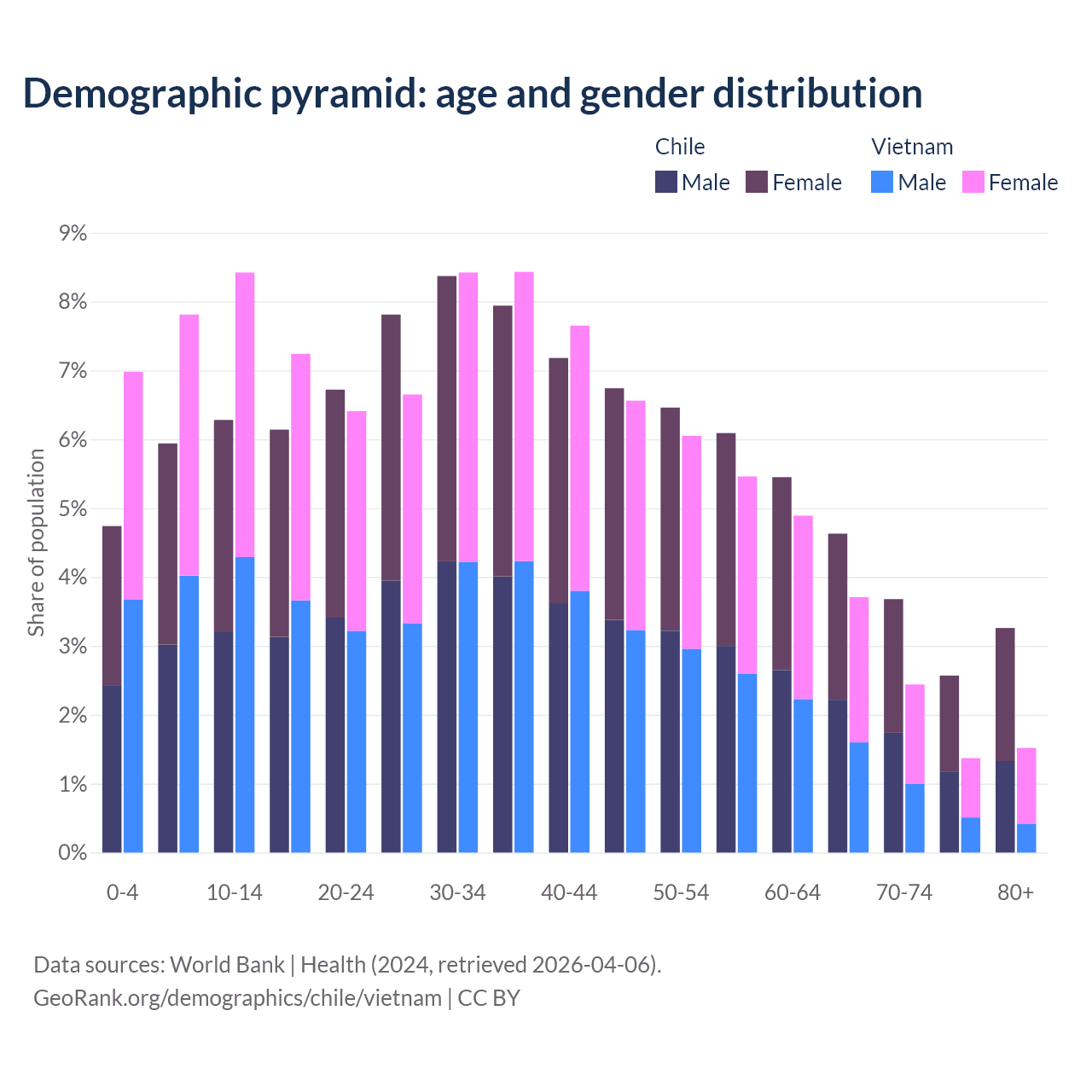Demographics of Chile compared to Vietnam: