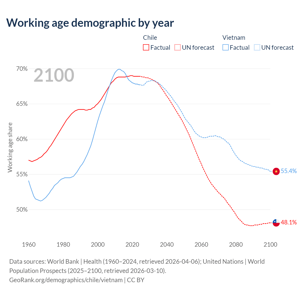 - Chile has 13.8M working age adults (aged 15-64) vs 69.3M in Vietnam.