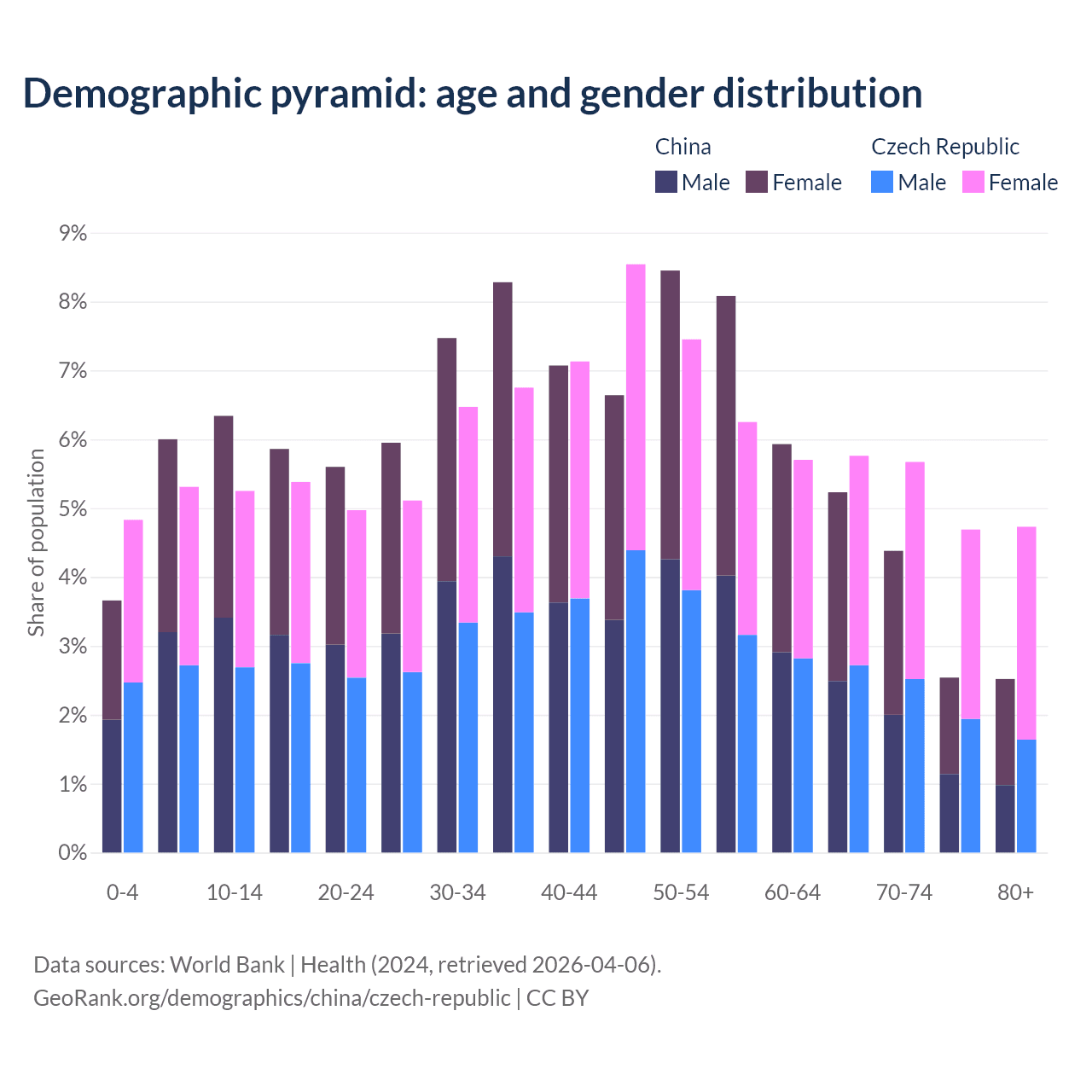 Demographics of China compared to the Czech Republic: