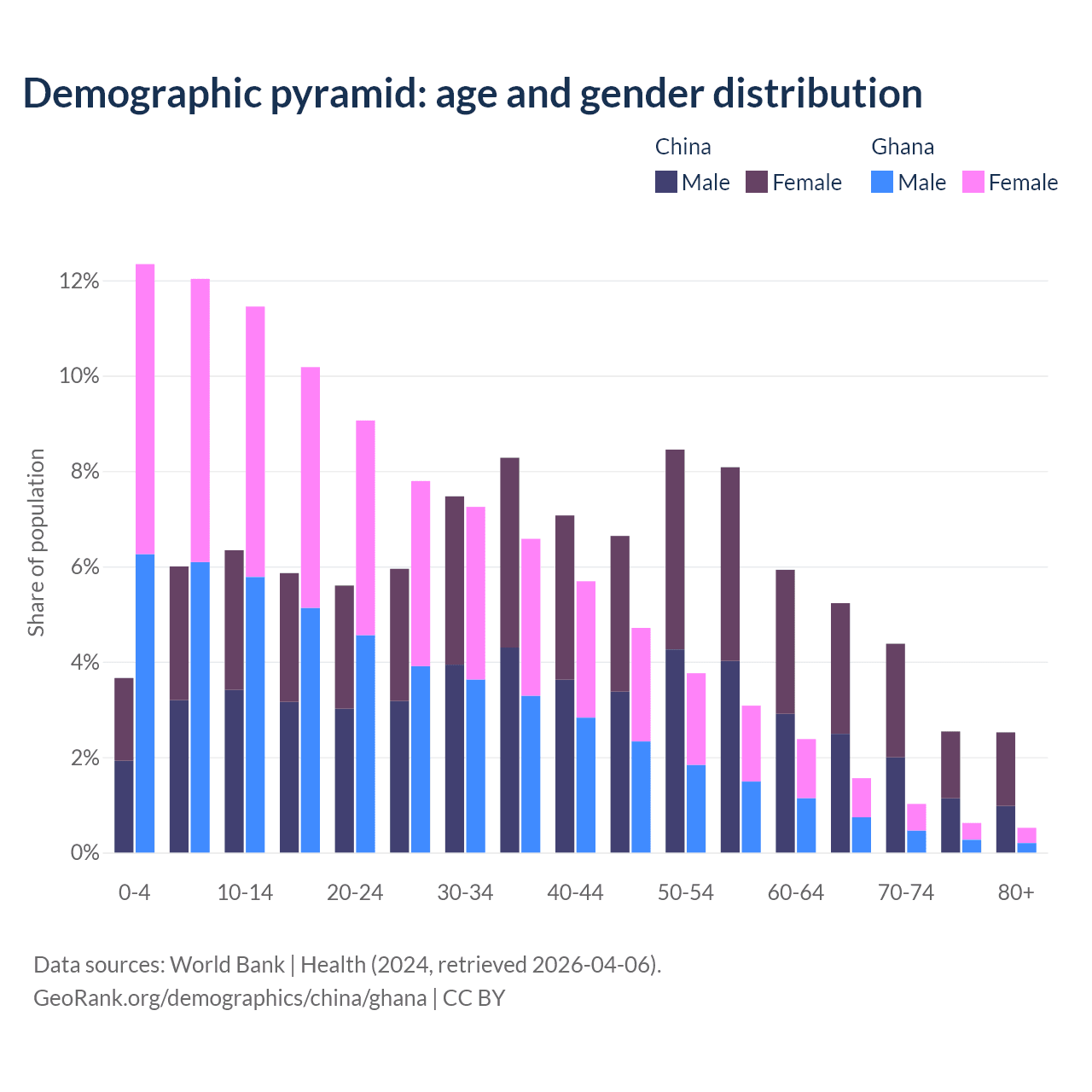 Demographics of China compared to Ghana: