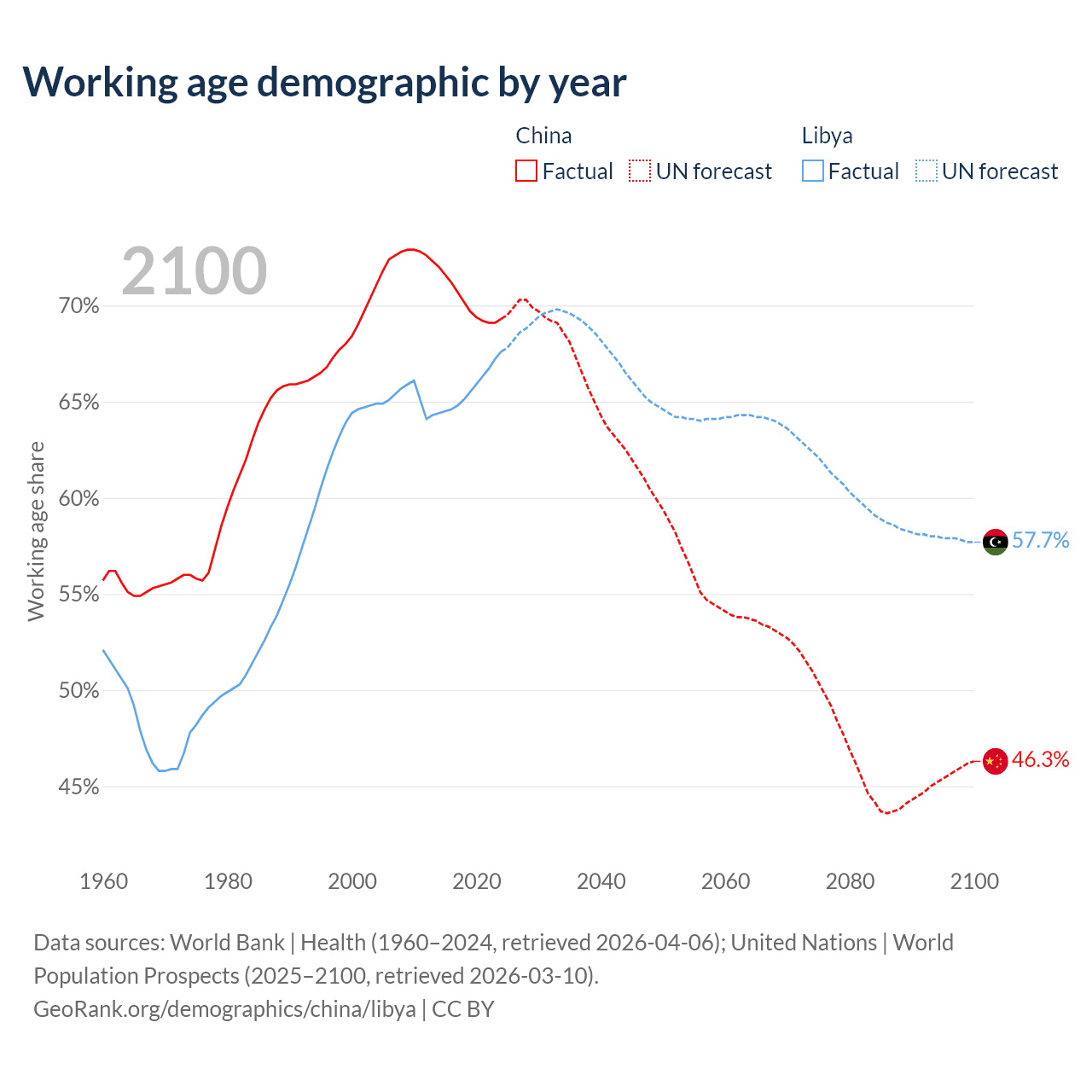 - China has 972M working age adults (aged 15-64) vs 5.11M in Libya.