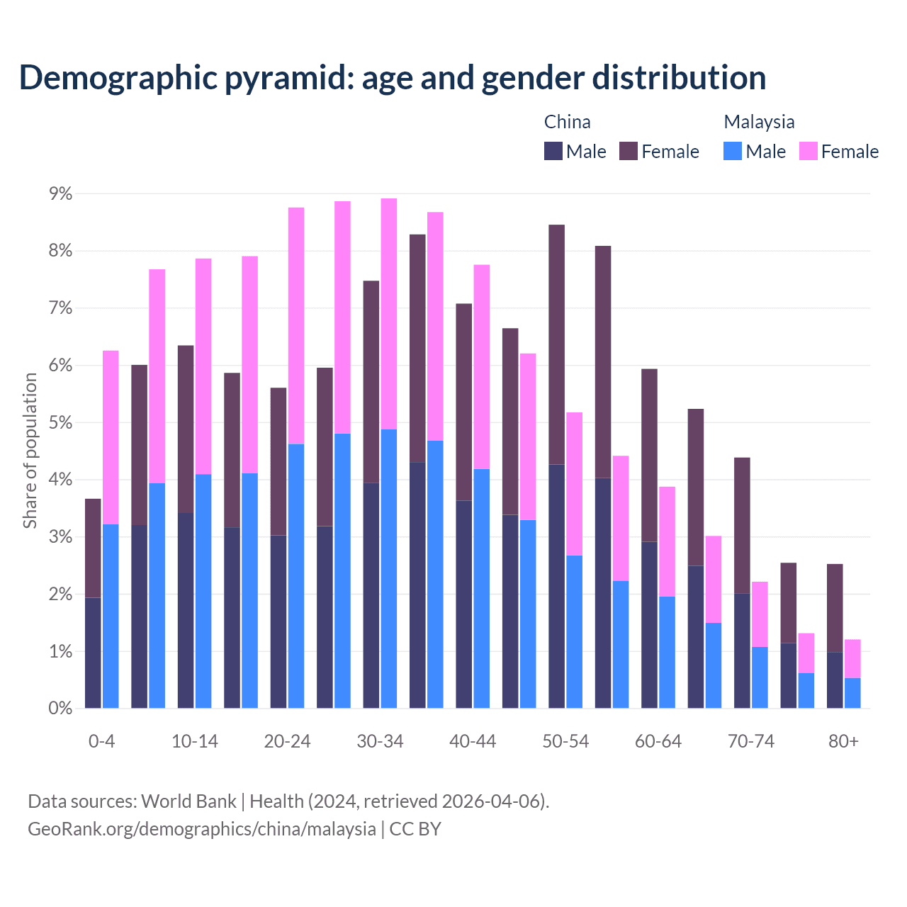 Demographics of China compared to Malaysia: