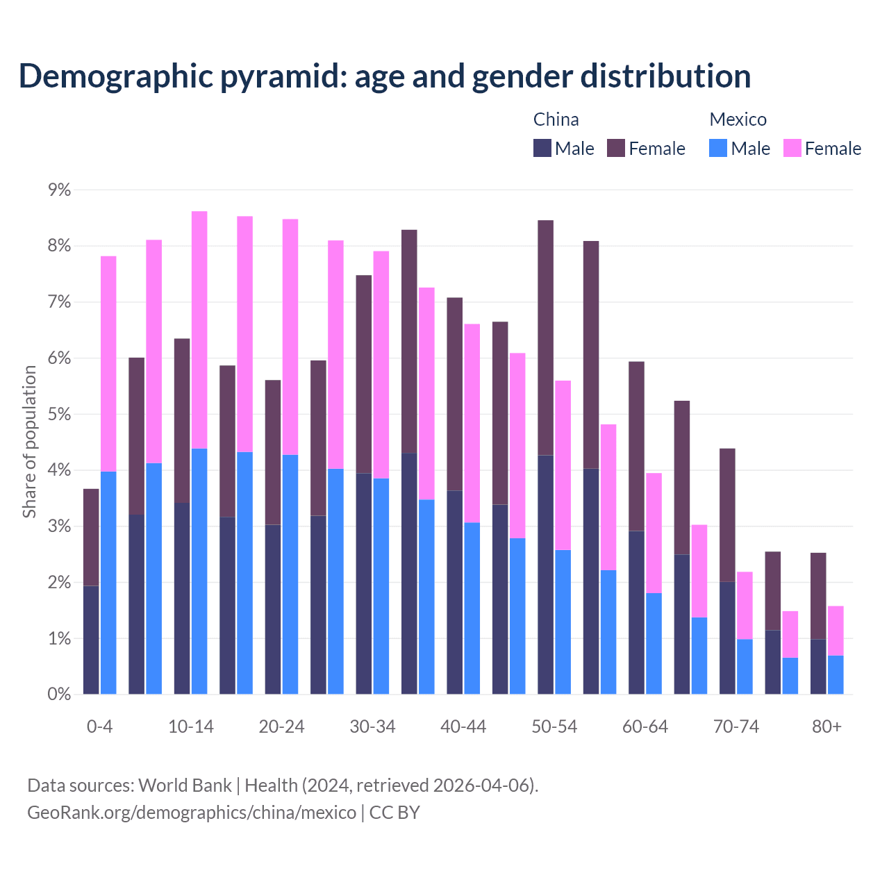 Demographics of China compared to Mexico: