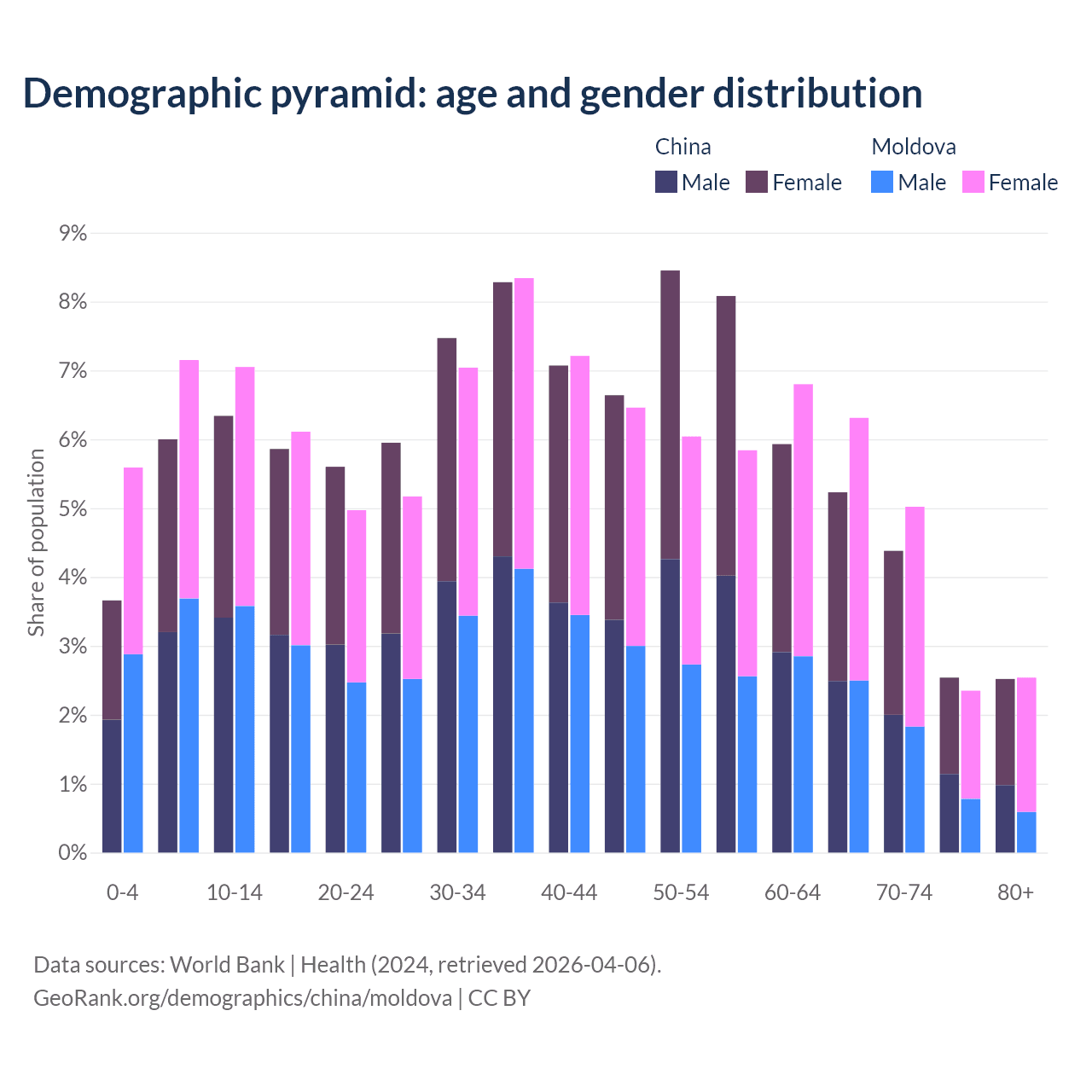 Demographics of China compared to Moldova: