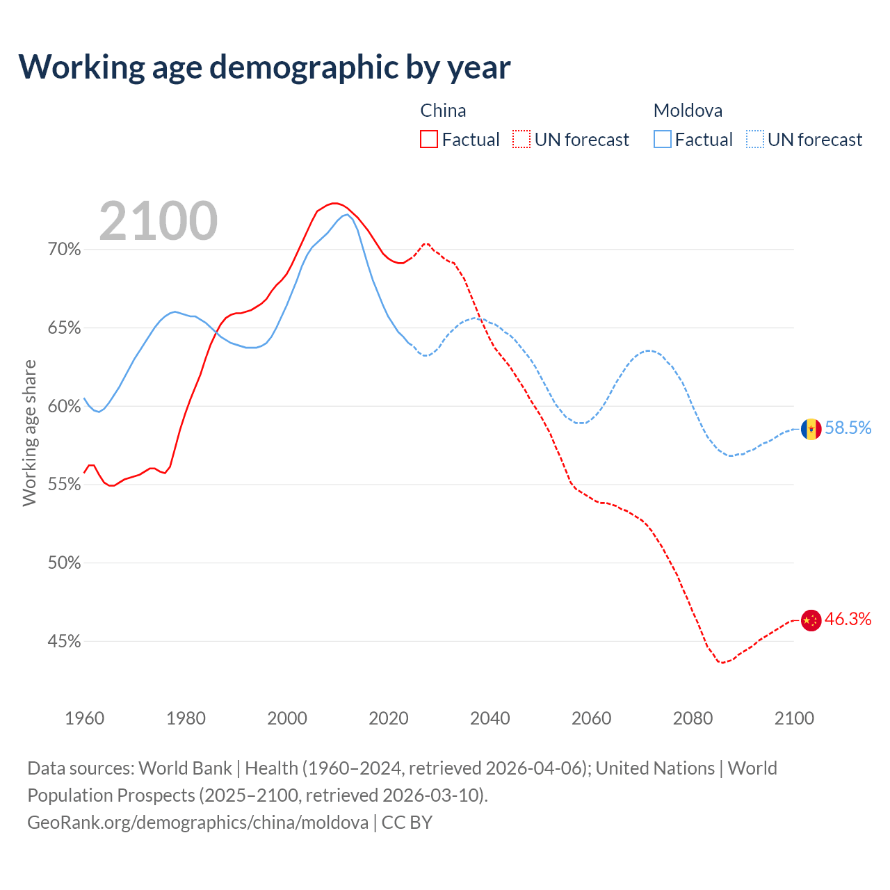 - China has 972M working age adults (aged 15-64) vs 1.5M in Moldova.