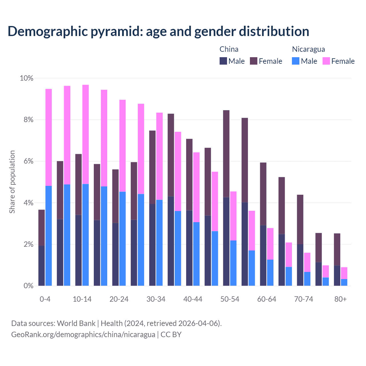 Demographics of China compared to Nicaragua: