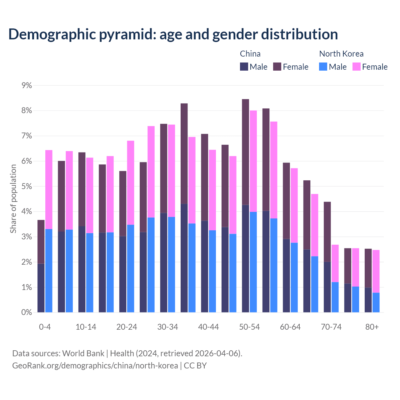 Demographics of China compared to North Korea: