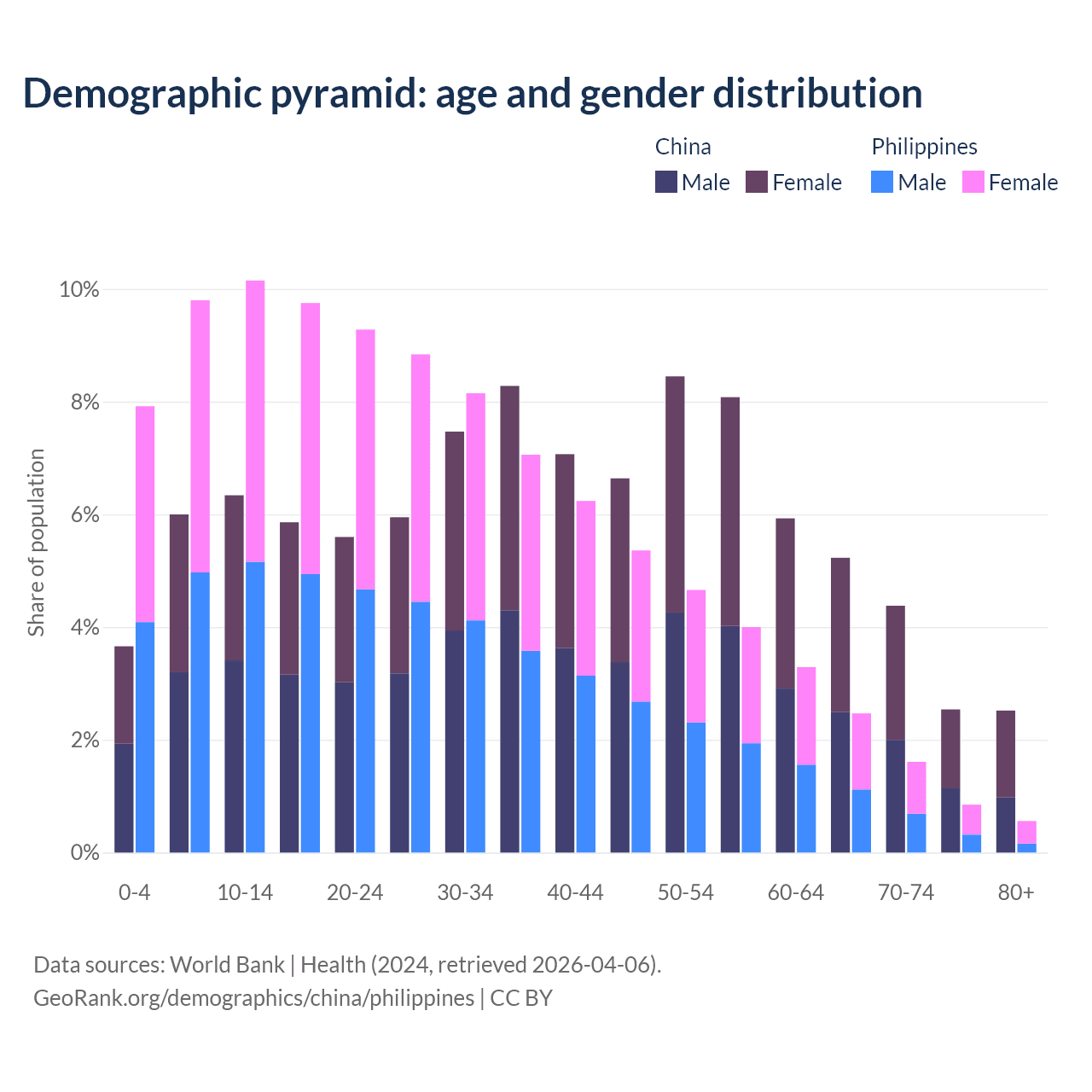 Demographics of China compared to the Philippines:
