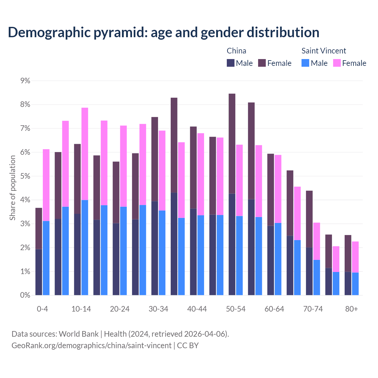 Demographics of China compared to Saint Vincent: