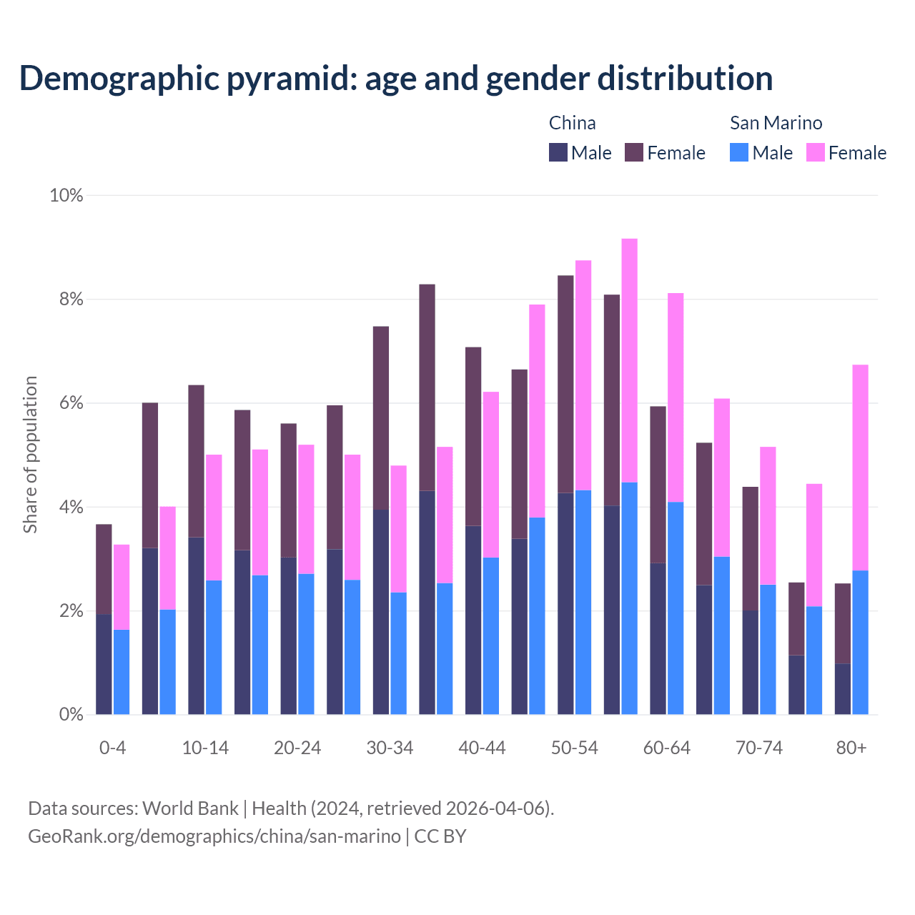 Demographics of China compared to San Marino: