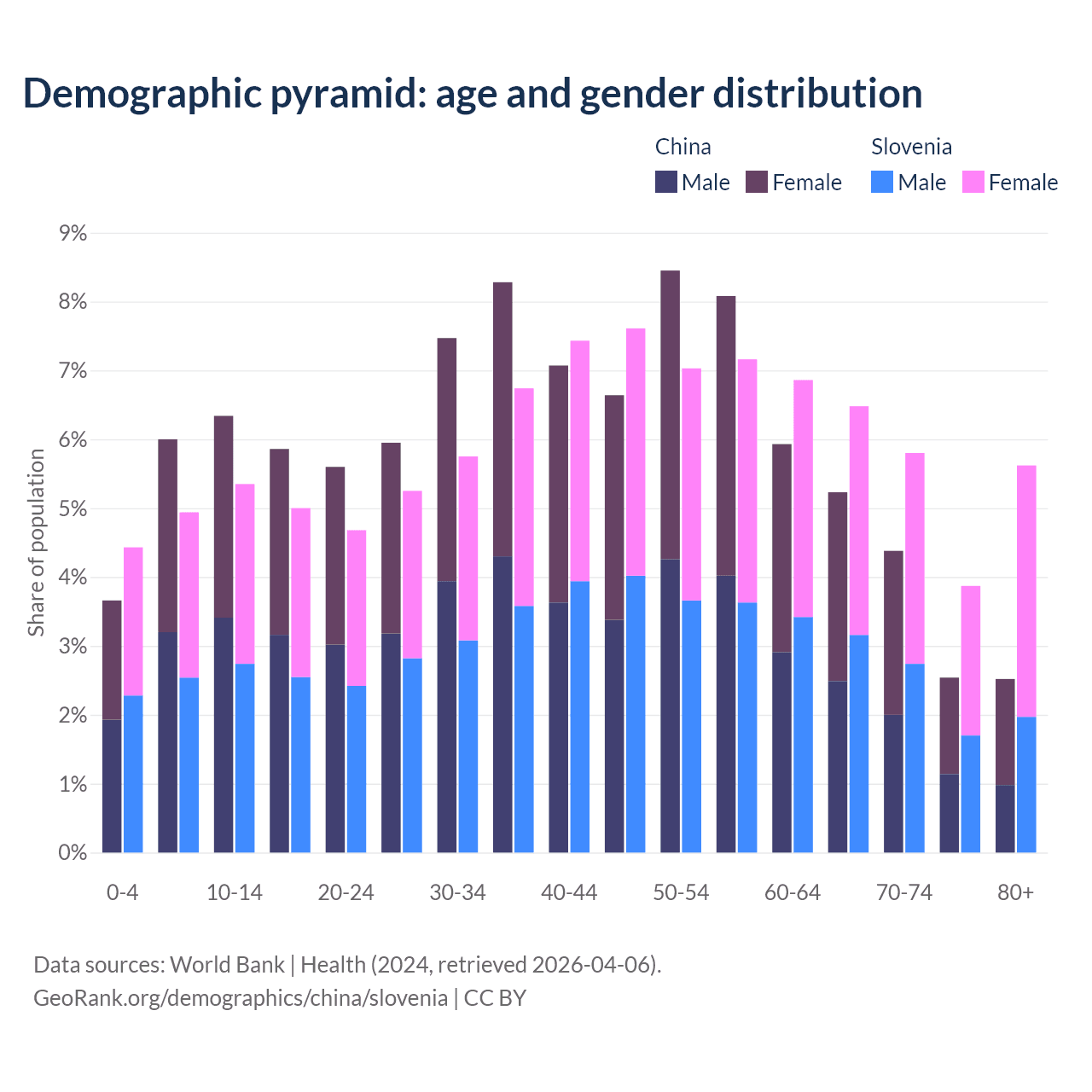 Demographics of China compared to Slovenia: