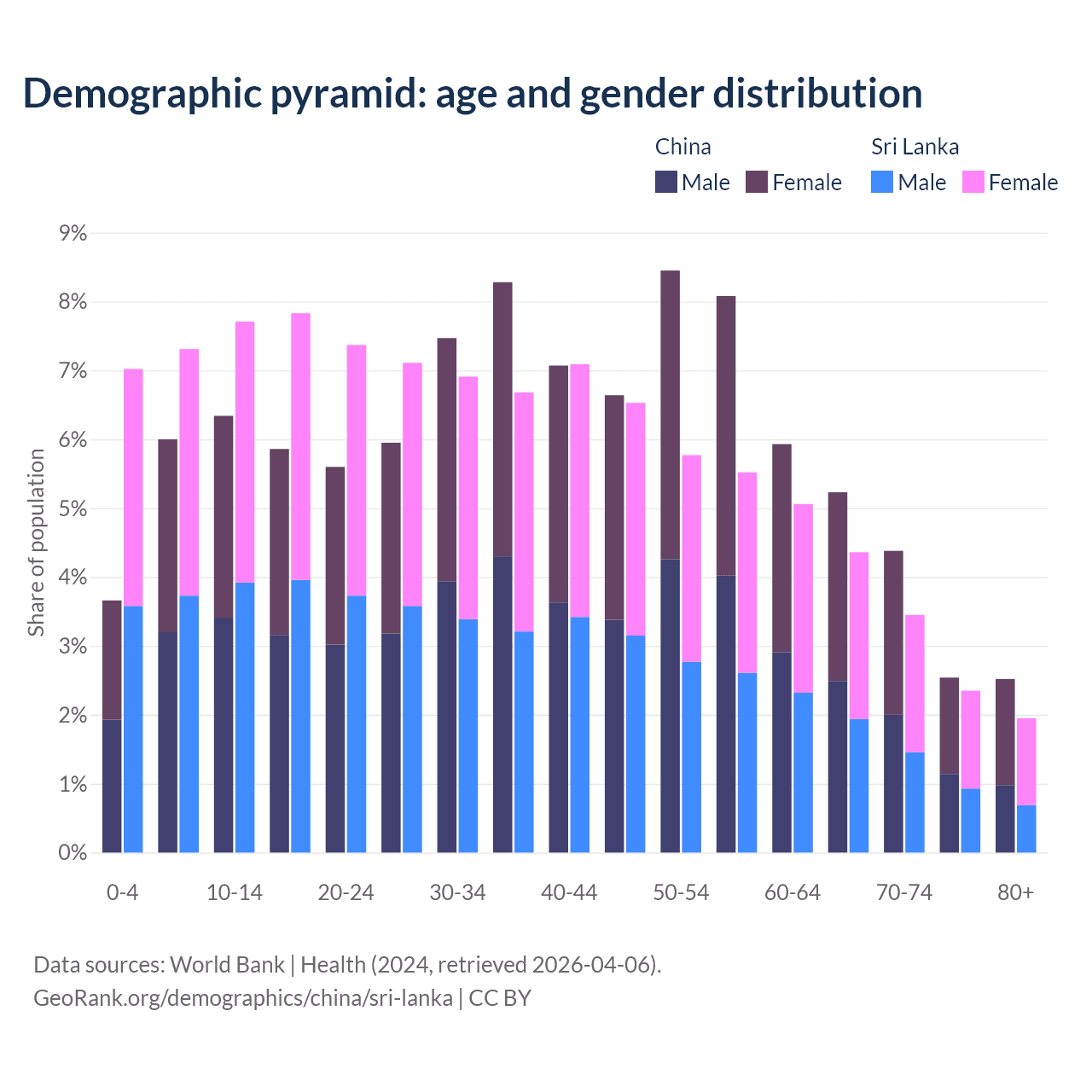 Demographics of China compared to Sri Lanka: