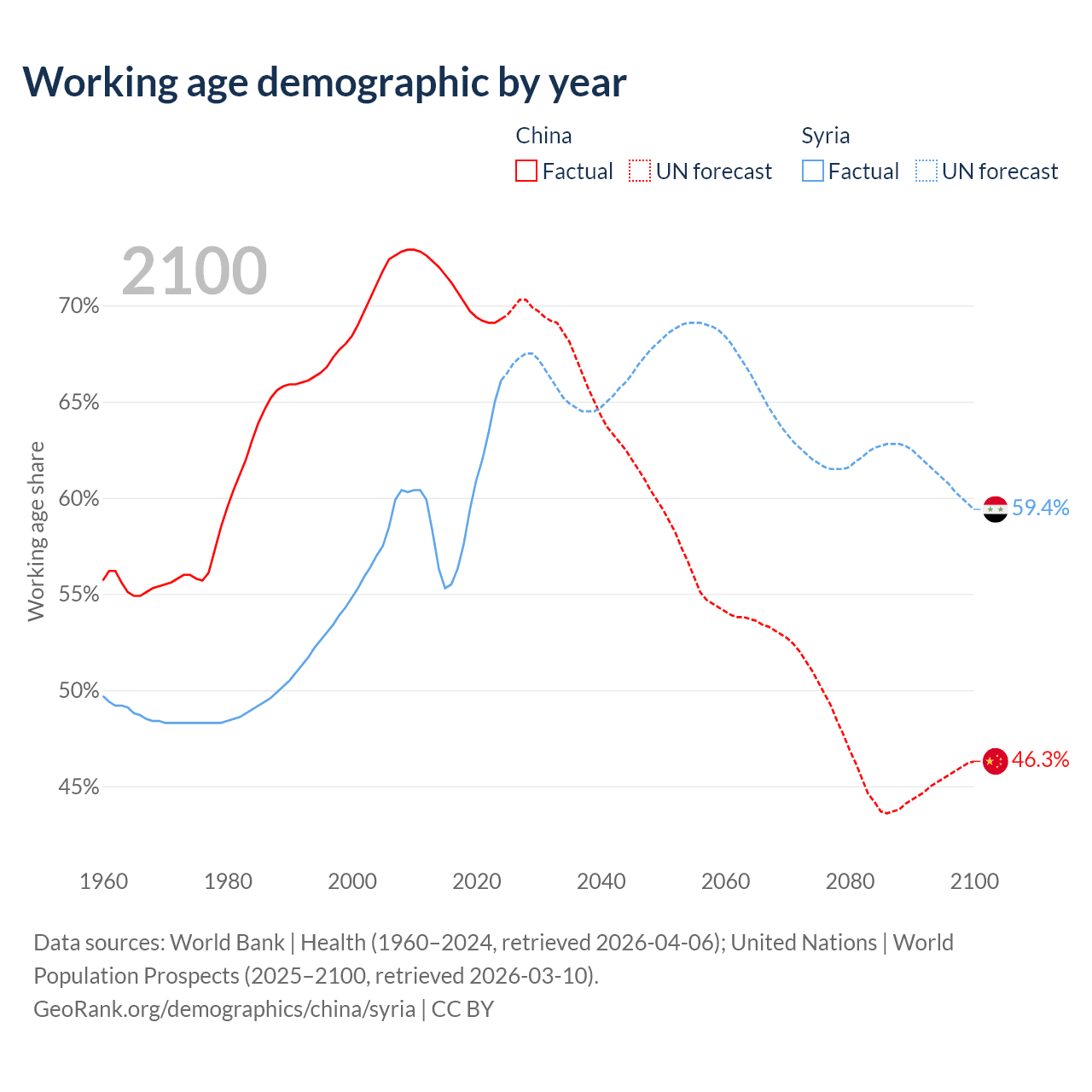 - China has 972M working age adults (aged 15-64) vs 17.7M in Syria.