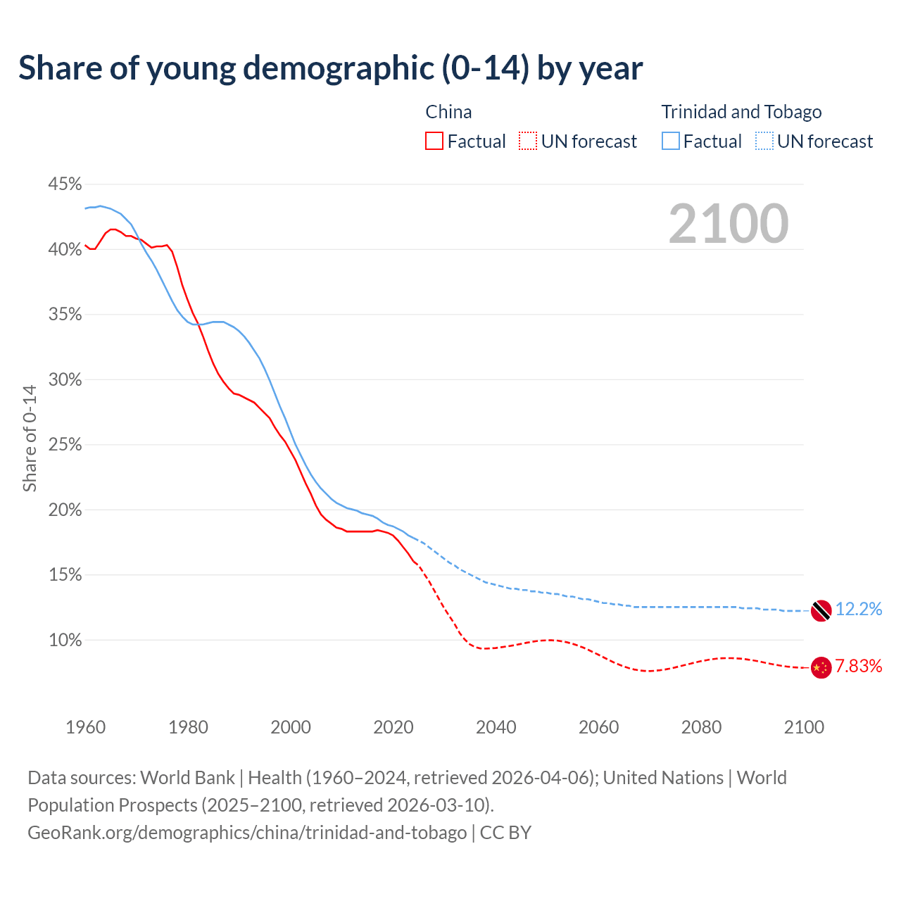- The share of young demographic (0-15 years old) in China is 16% vs 17.8% in Trinidad and Tobago.