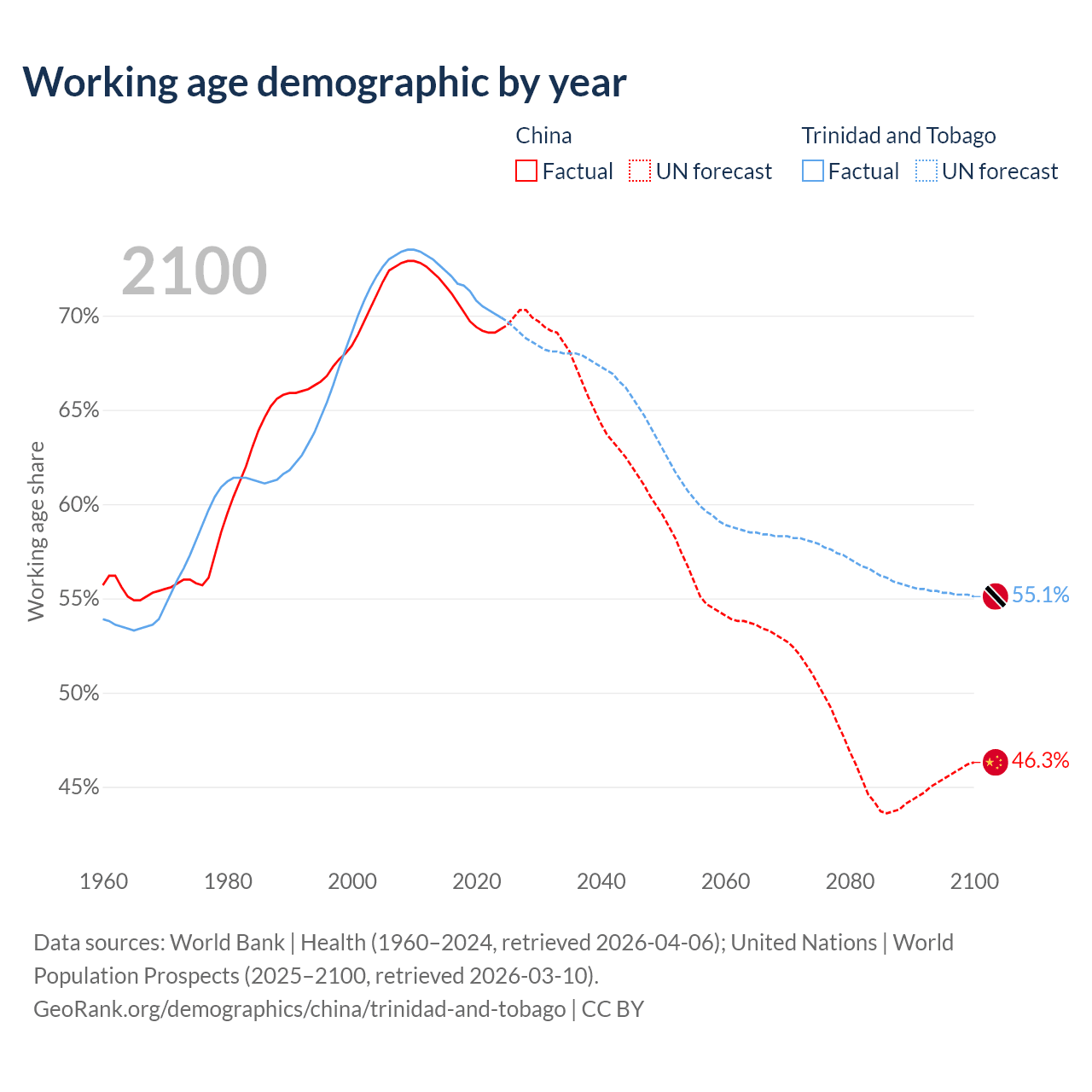 - China has 972M working age adults (aged 15-64) vs 960K in Trinidad and Tobago.