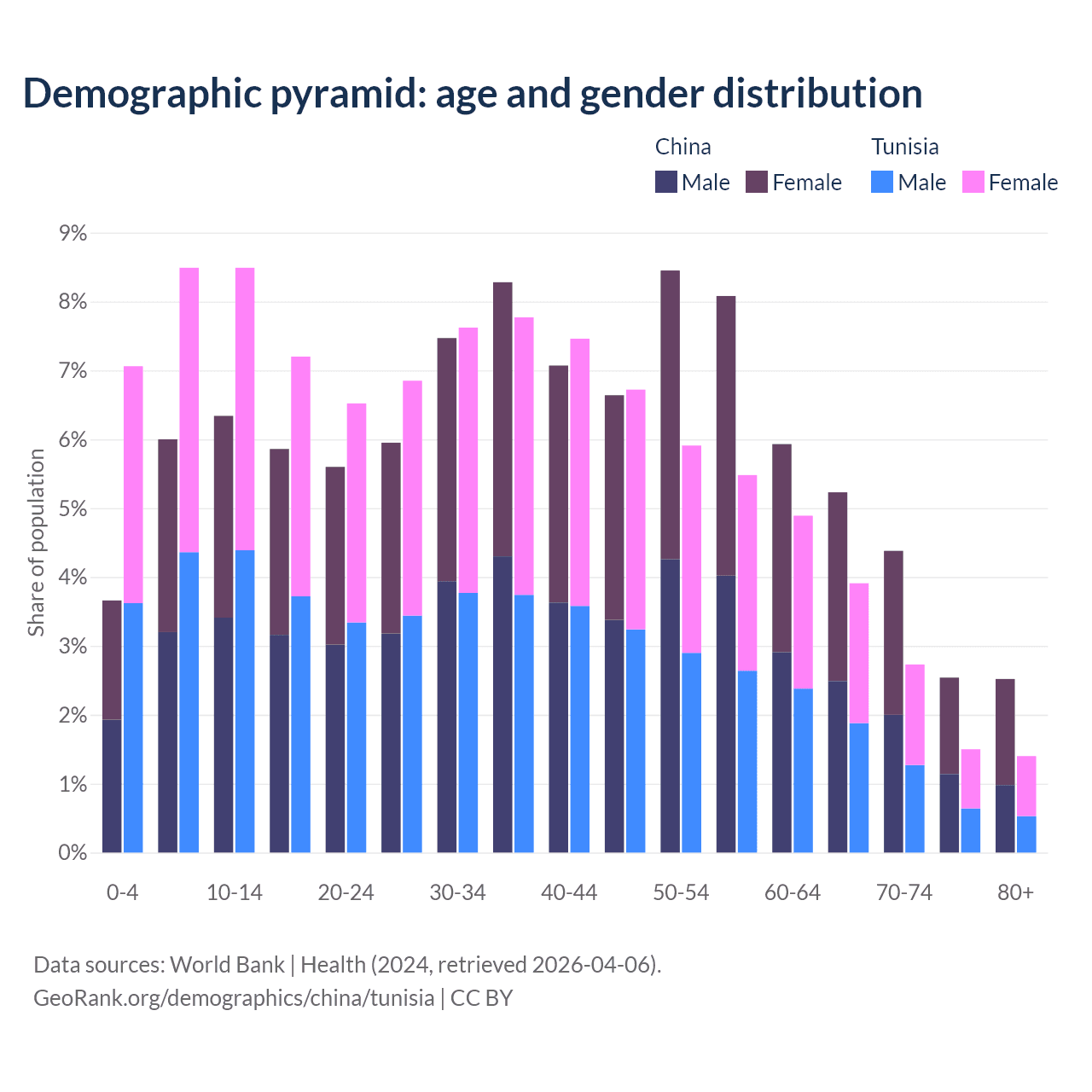 Demographics of China compared to Tunisia: