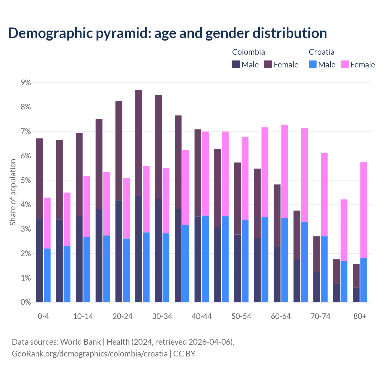 Demographics of Colombia compared to Croatia: