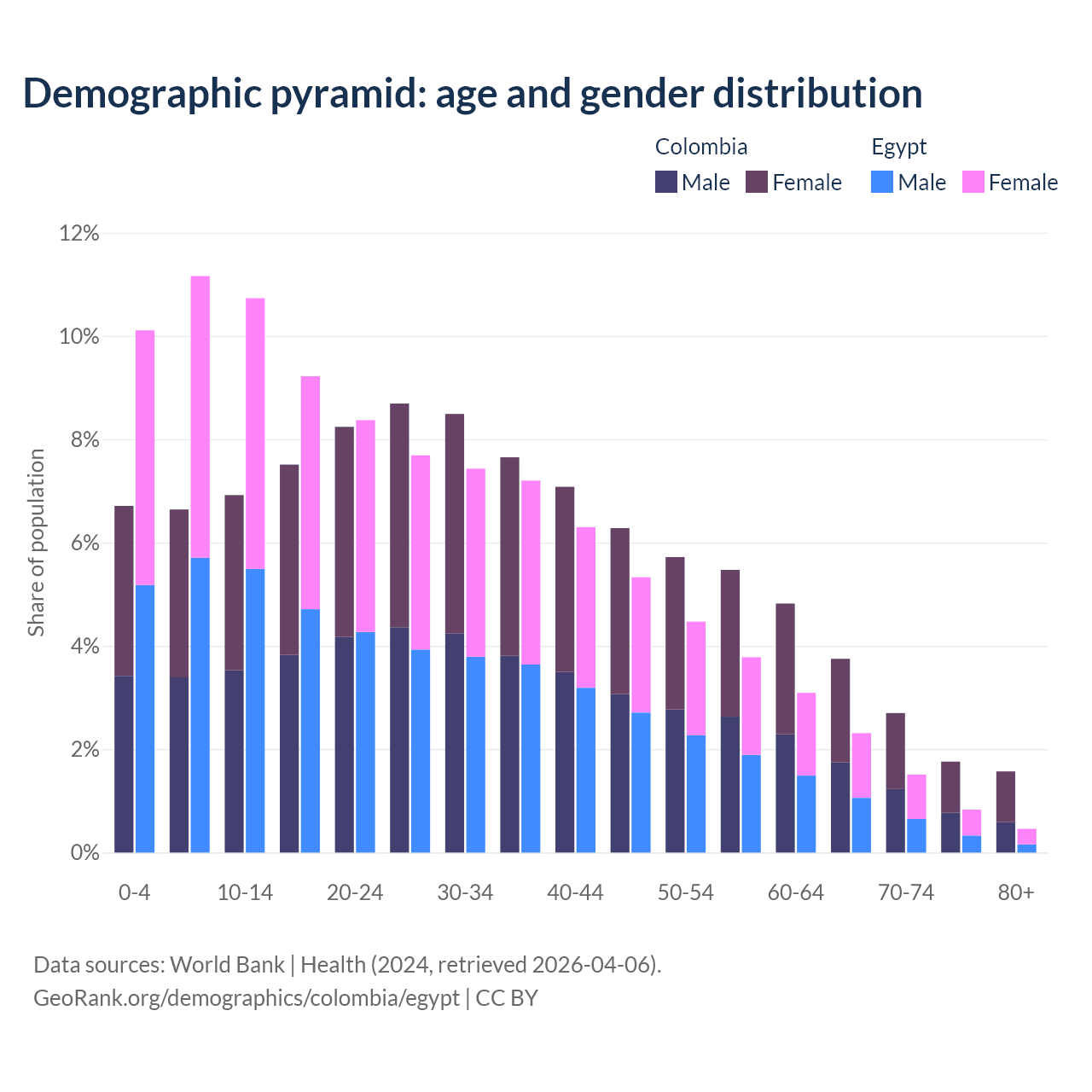 Demographics of Colombia compared to Egypt: