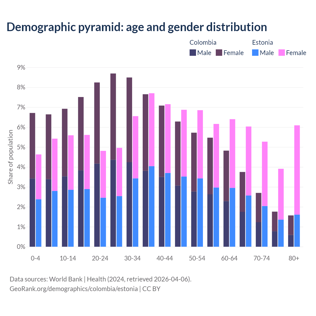 Demographics of Colombia compared to Estonia: