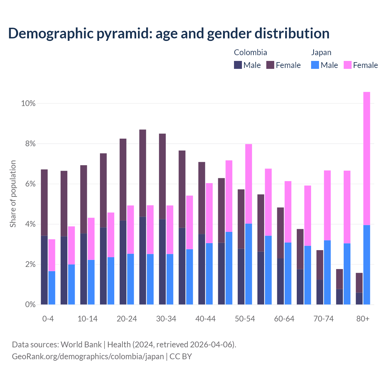 Demographics of Colombia compared to Japan: