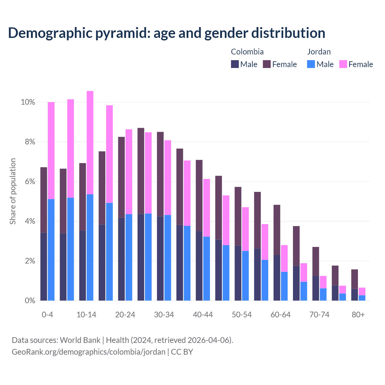 Demographics of Colombia compared to Jordan: