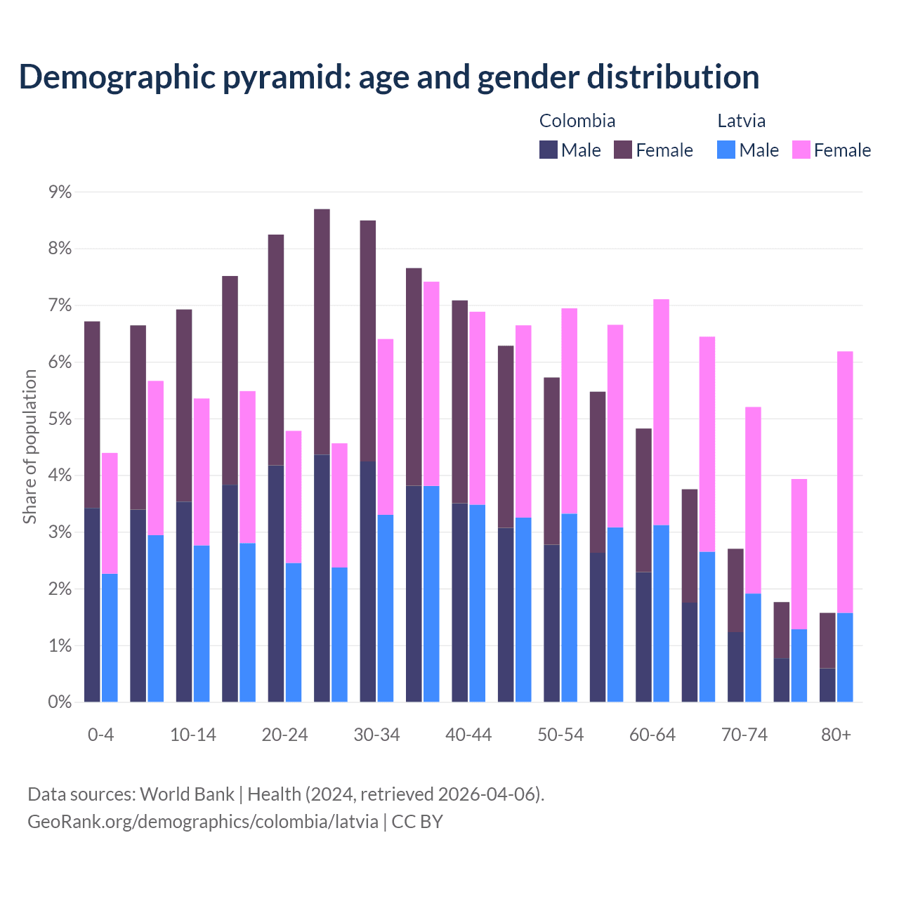 Demographics of Colombia compared to Latvia:
