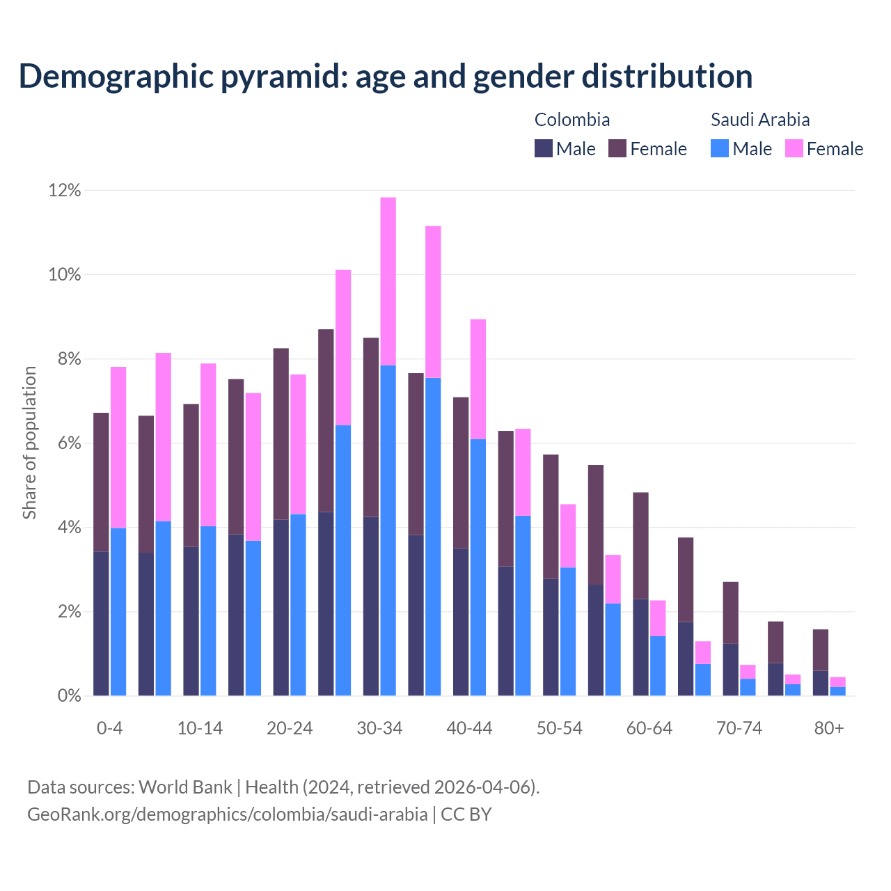 Demographics of Colombia compared to Saudi Arabia: