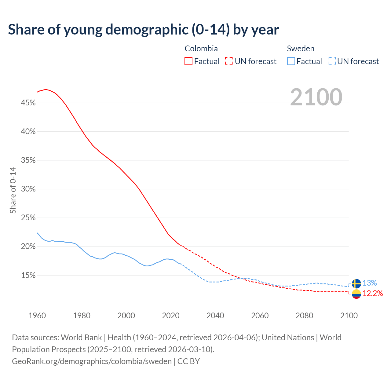 - The share of young demographic (0-15 years old) in Colombia is 20.3% vs 17% in Sweden.