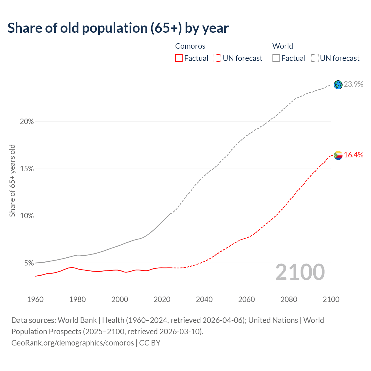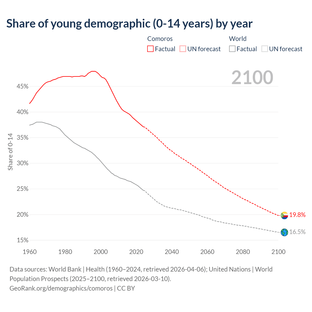 Median age in Comoros, 1960–2100