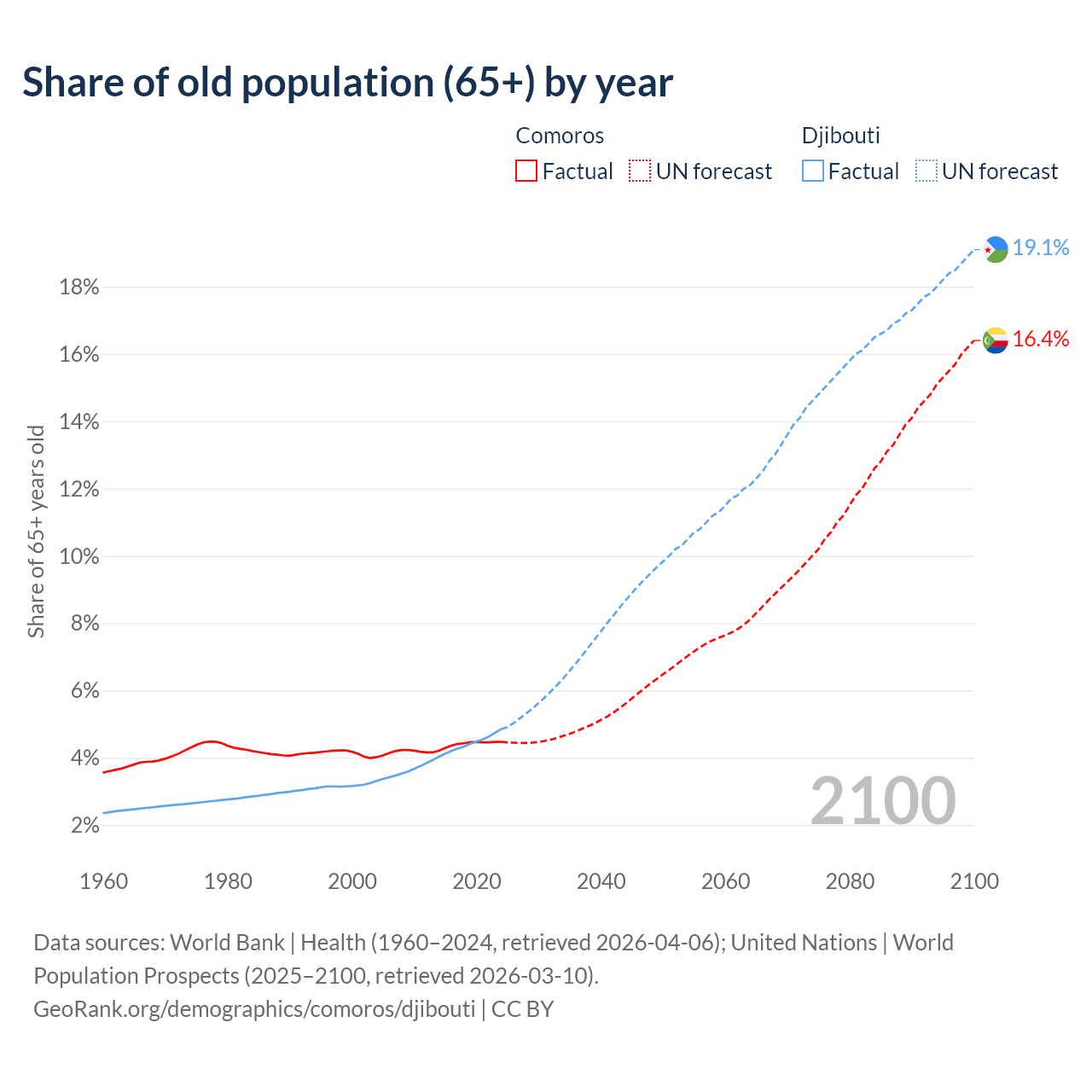 - The share of old-age demographic (65+) in Comoros is 4.47% vs 4.85% in Djibouti.