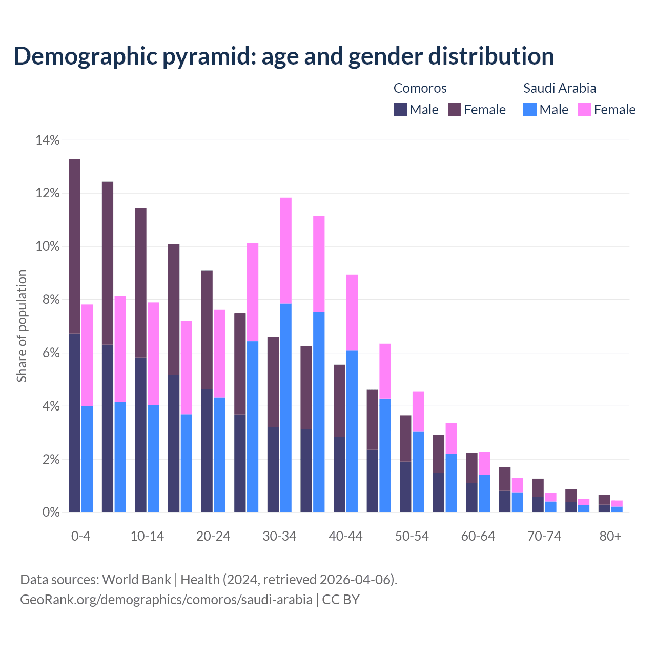 Demographics of Comoros compared to Saudi Arabia: