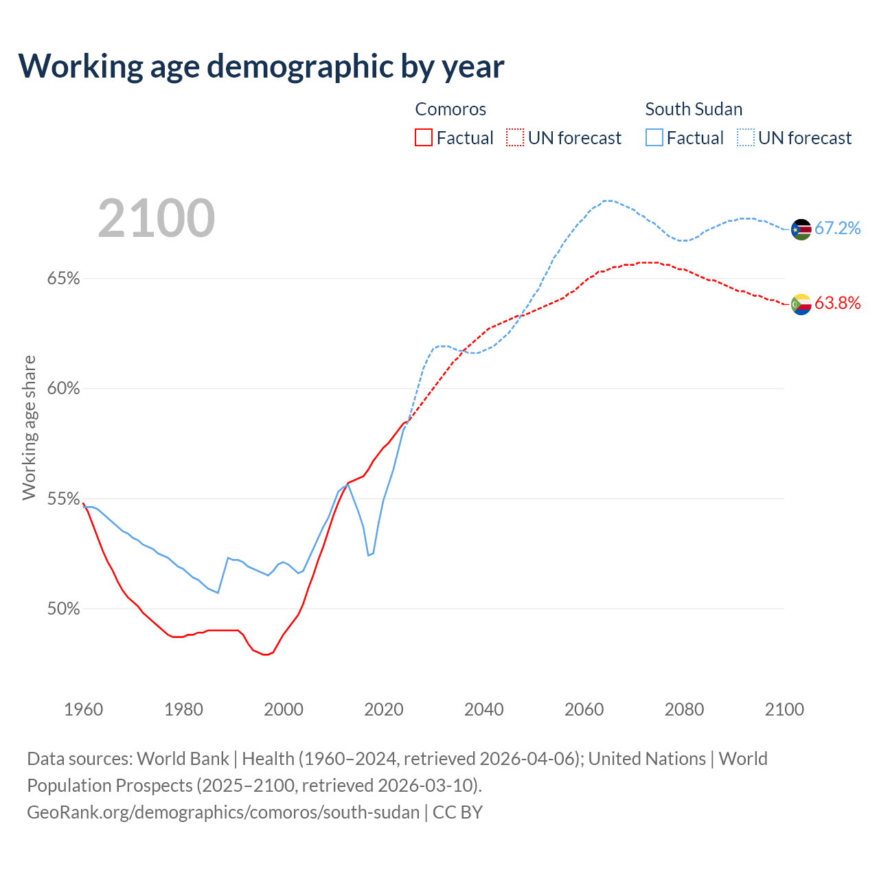 - Comoros has 528K working age adults (aged 15-64) vs 7.27M in South Sudan.