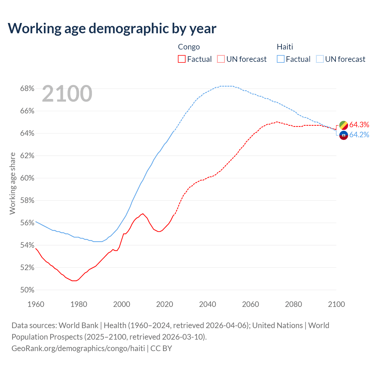 - The Congo has 3.78M working age adults (aged 15-64) vs 7.74M in Haiti.