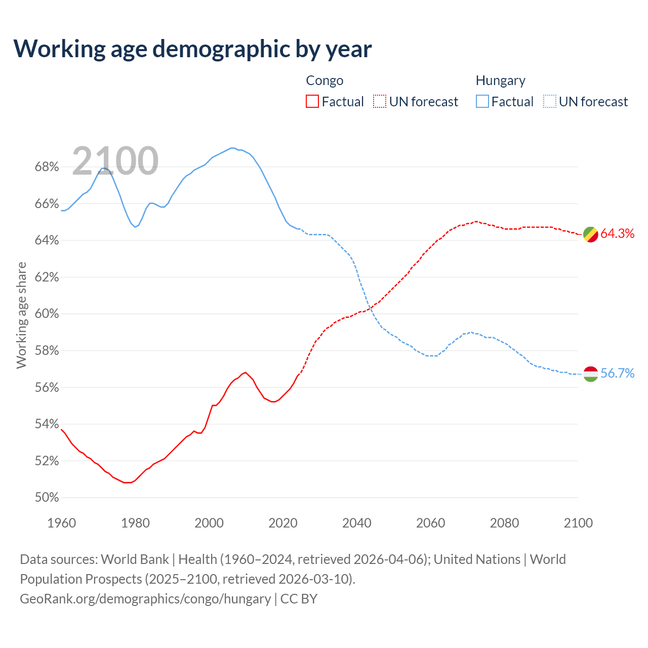 - The Congo has 3.78M working age adults (aged 15-64) vs 6.12M in Hungary.