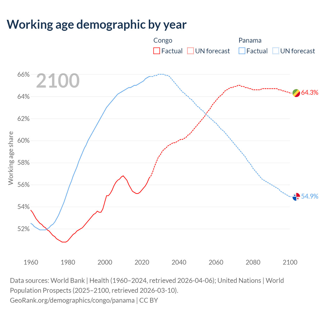 - The Congo has 3.78M working age adults (aged 15-64) vs 3.05M in Panama.