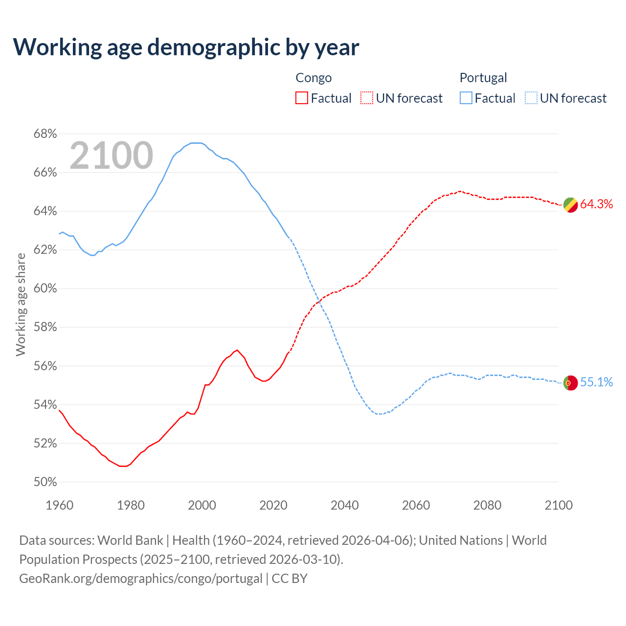- The Congo has 3.78M working age adults (aged 15-64) vs 6.68M in Portugal.