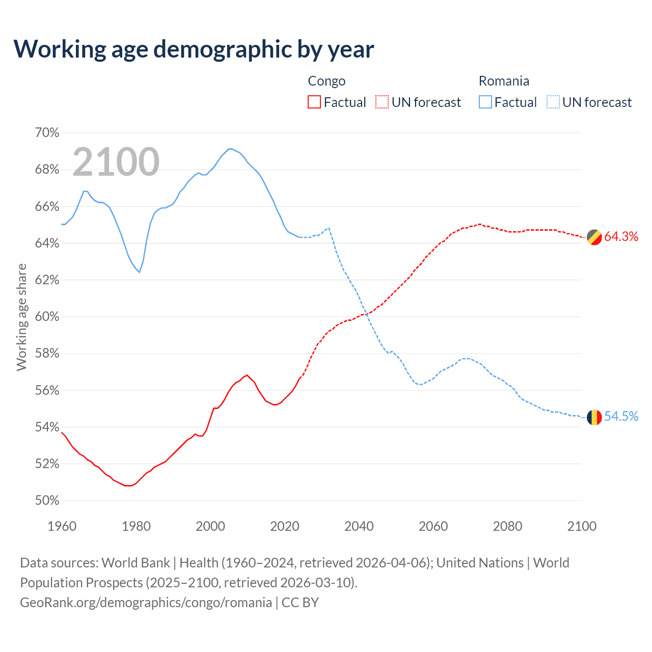 - The Congo has 3.78M working age adults (aged 15-64) vs 12.1M in Romania.