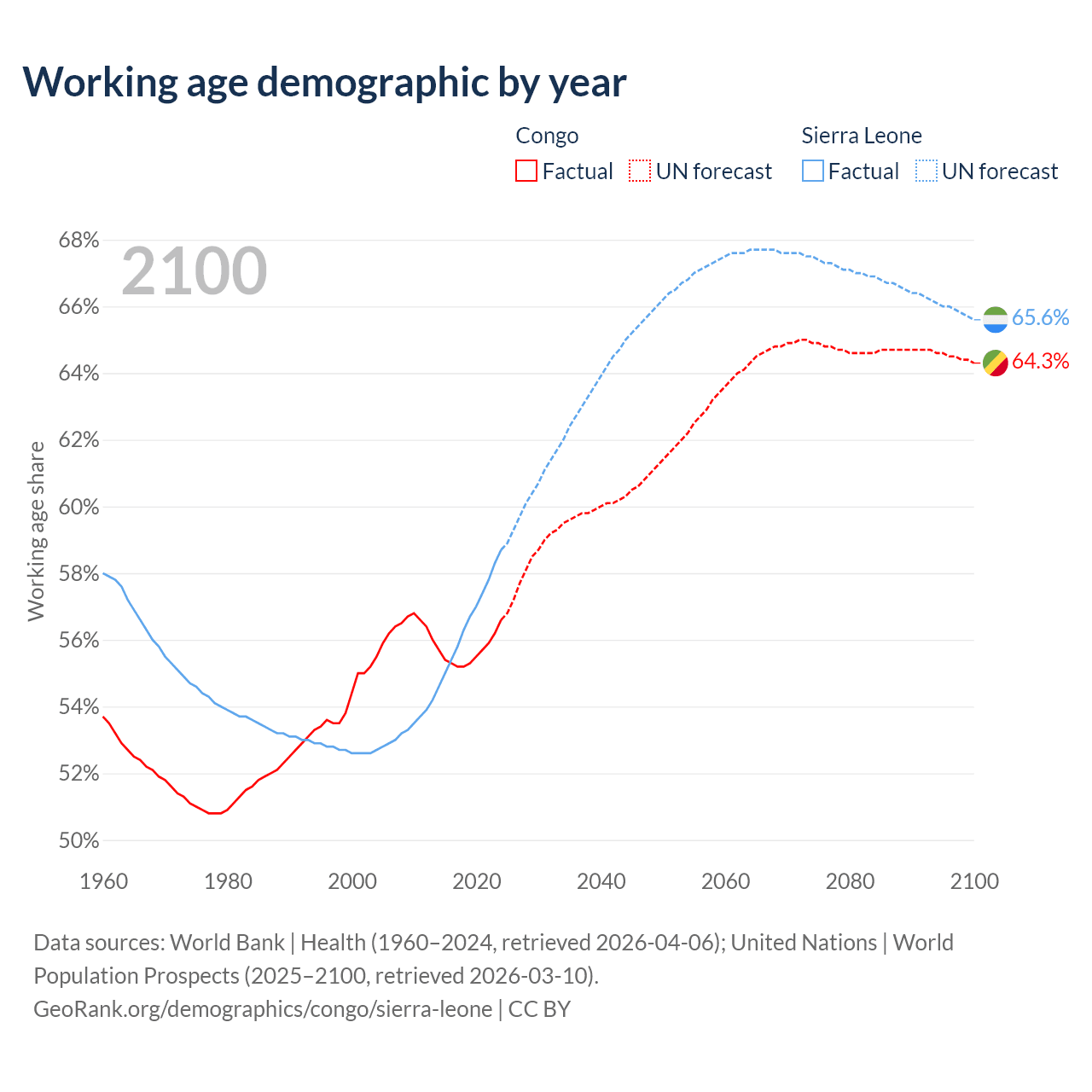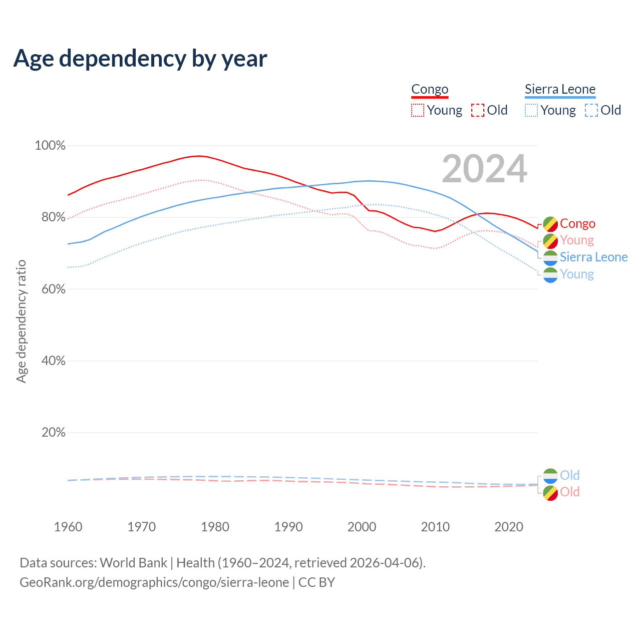 - The share of old-age demographic (65+) in the Congo is 2.99% vs 3.24% in Sierra Leone.