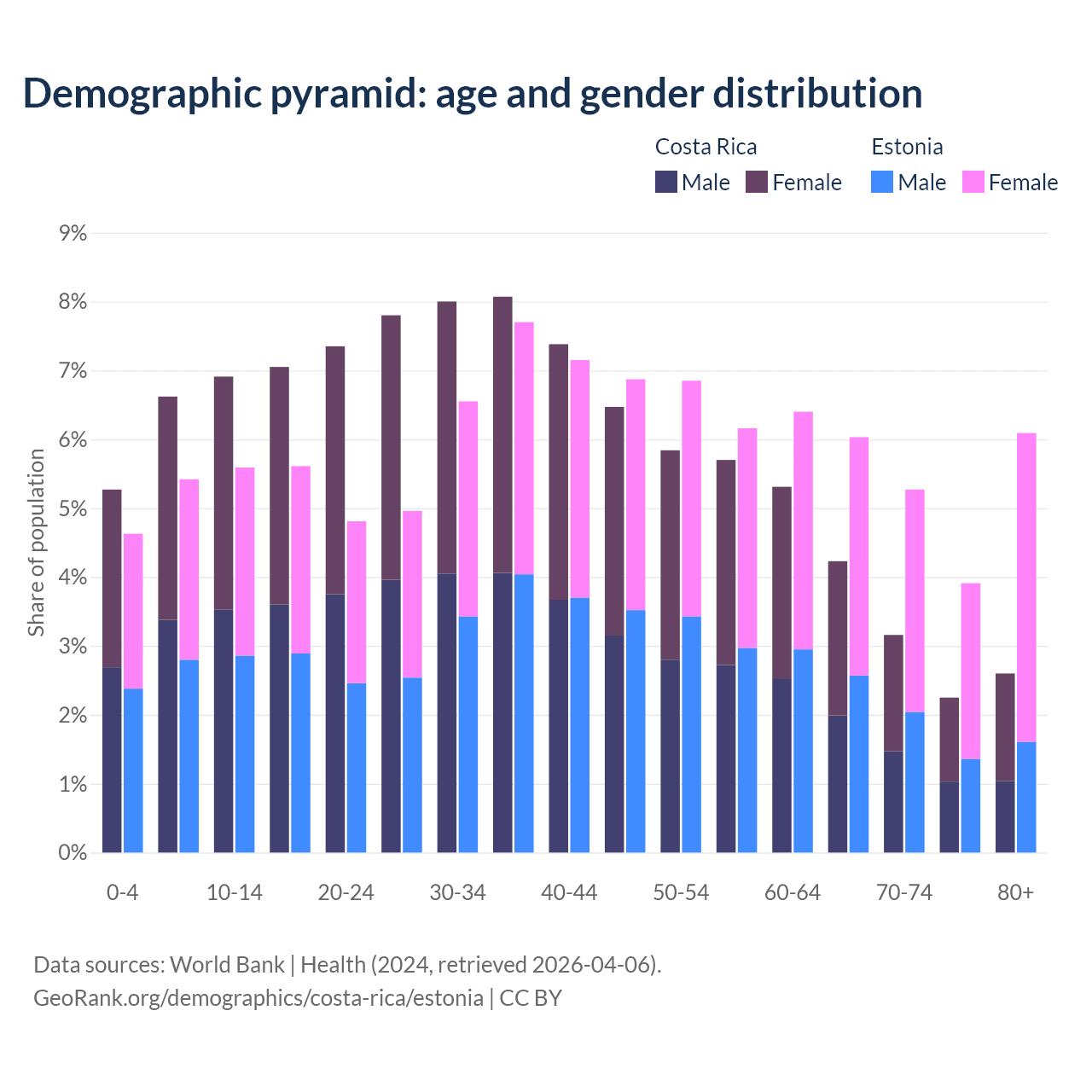 Demographics of Costa Rica compared to Estonia: